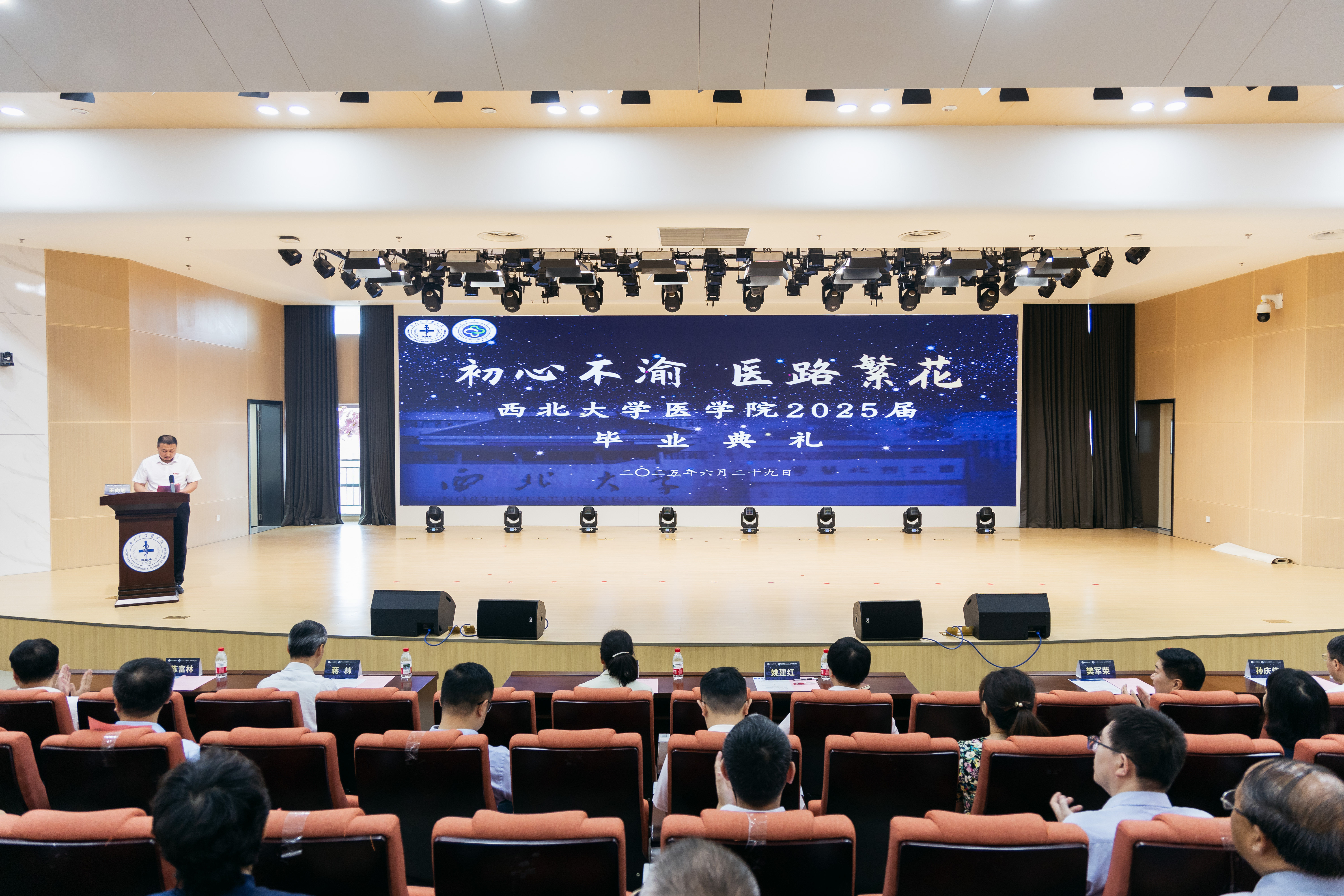 蒋林向长期以来关心支持西大医学事业的各级领导、业界同仁表示感谢,他介绍了复办医学以来学校所取得的成绩。他讲到,每一组亮眼数字、每一项重大成果、每一次高光时刻都将定格在岁月长河中,镌刻在时空记忆里,成为永恒的“西大医学记忆”。他强调,医学教育,是教育强国和健康中国两大战略的重要交汇点,希望同学们秉承西大医学前辈“医人报国、精诚济世”的生命情怀,坚守学医初心,扎根基层、服务一线,在宁静淡泊中追求卓越,勤炼专业本领,恪守职业操守,维护医者声誉。