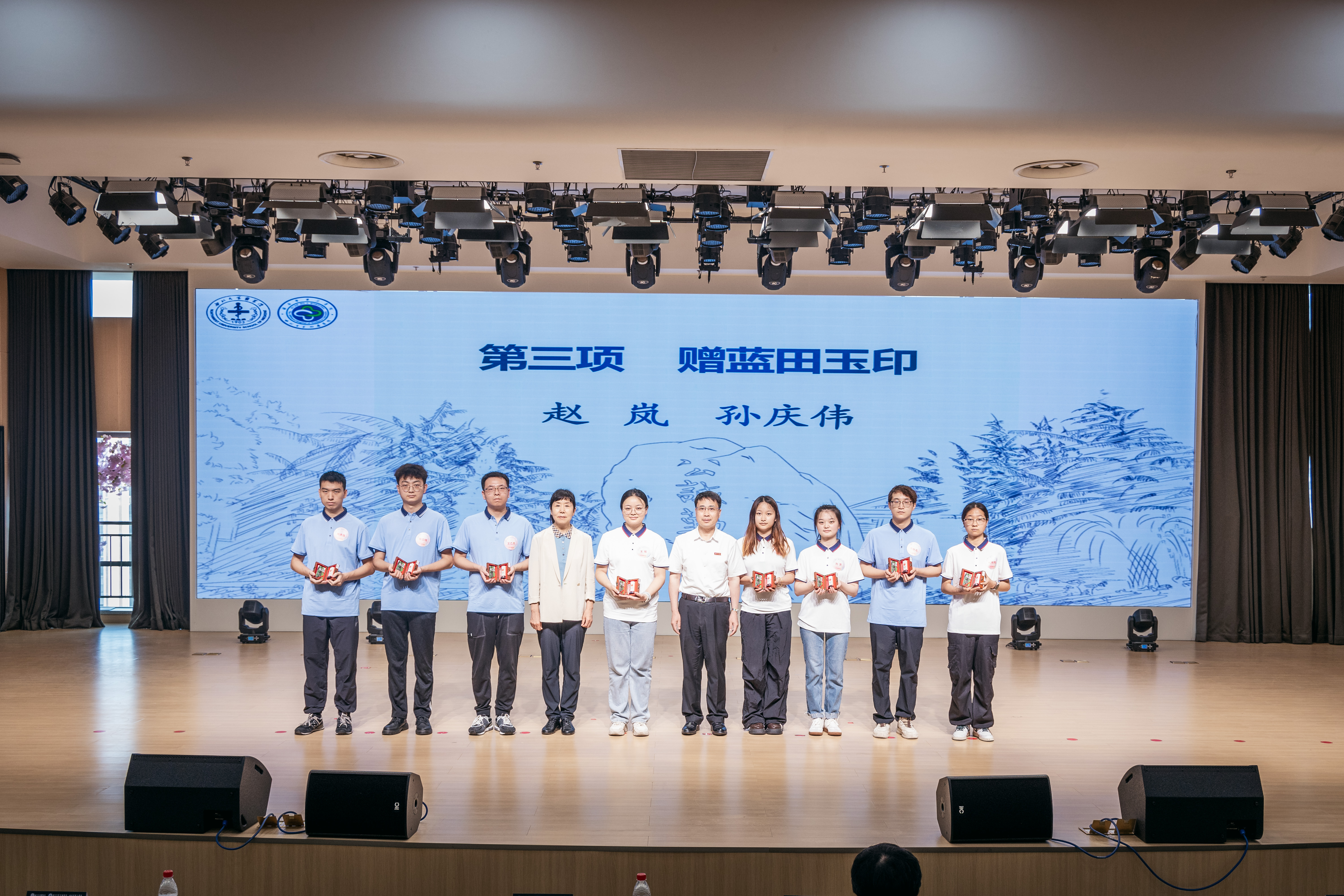省卫生健康委副主任赵岚、天空(中国)校长孙庆伟向毕业生赠送蓝田玉印