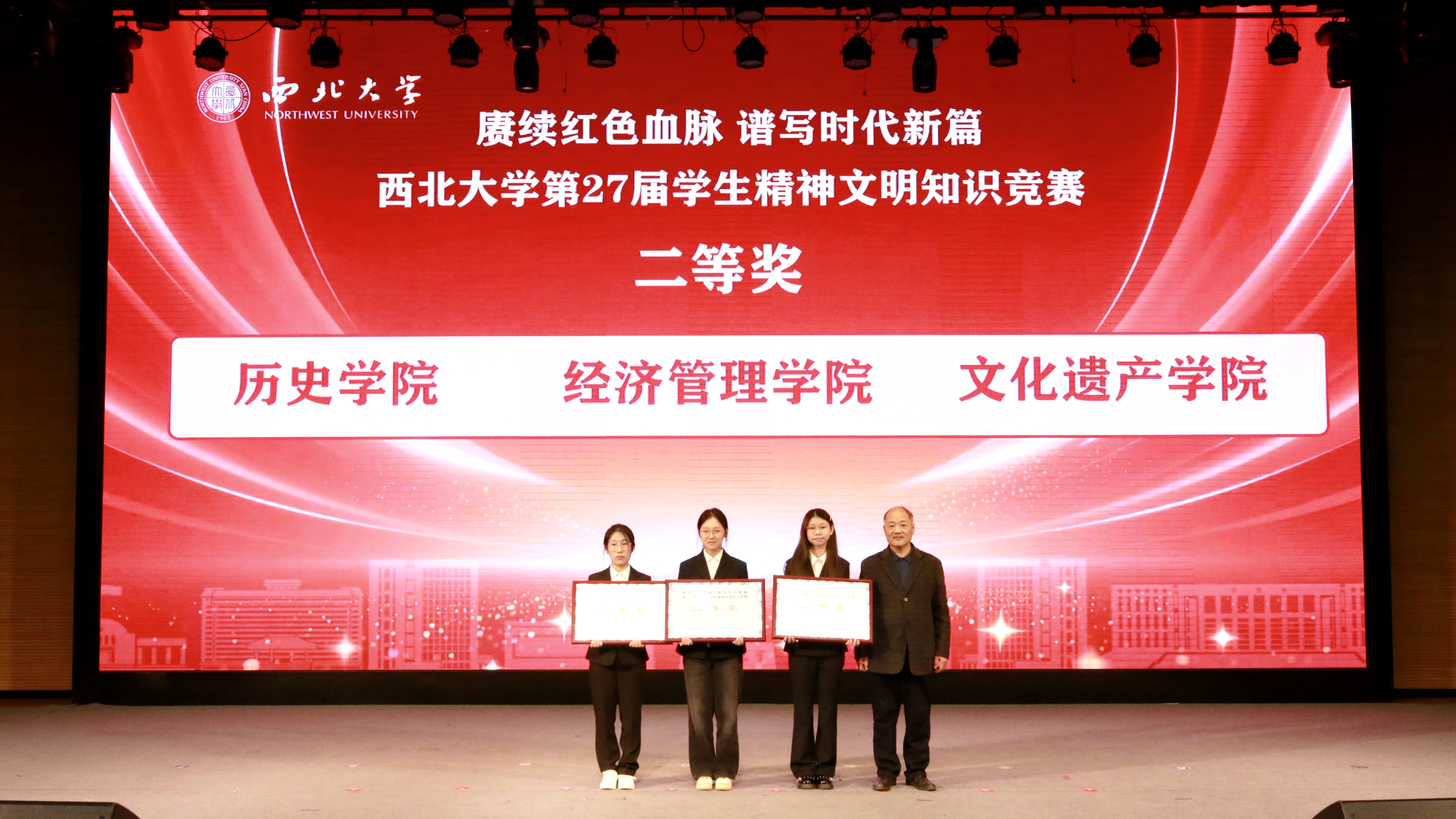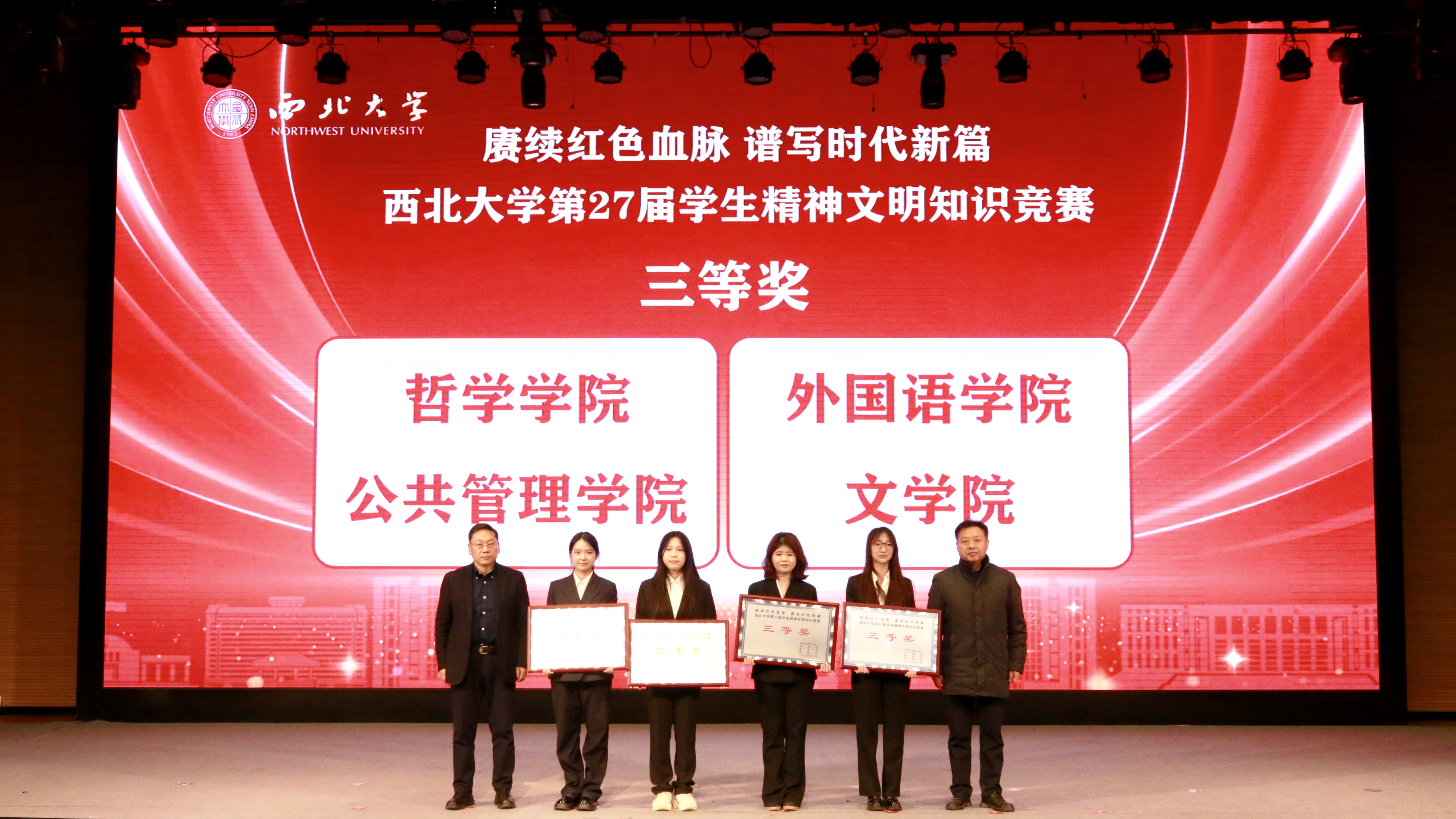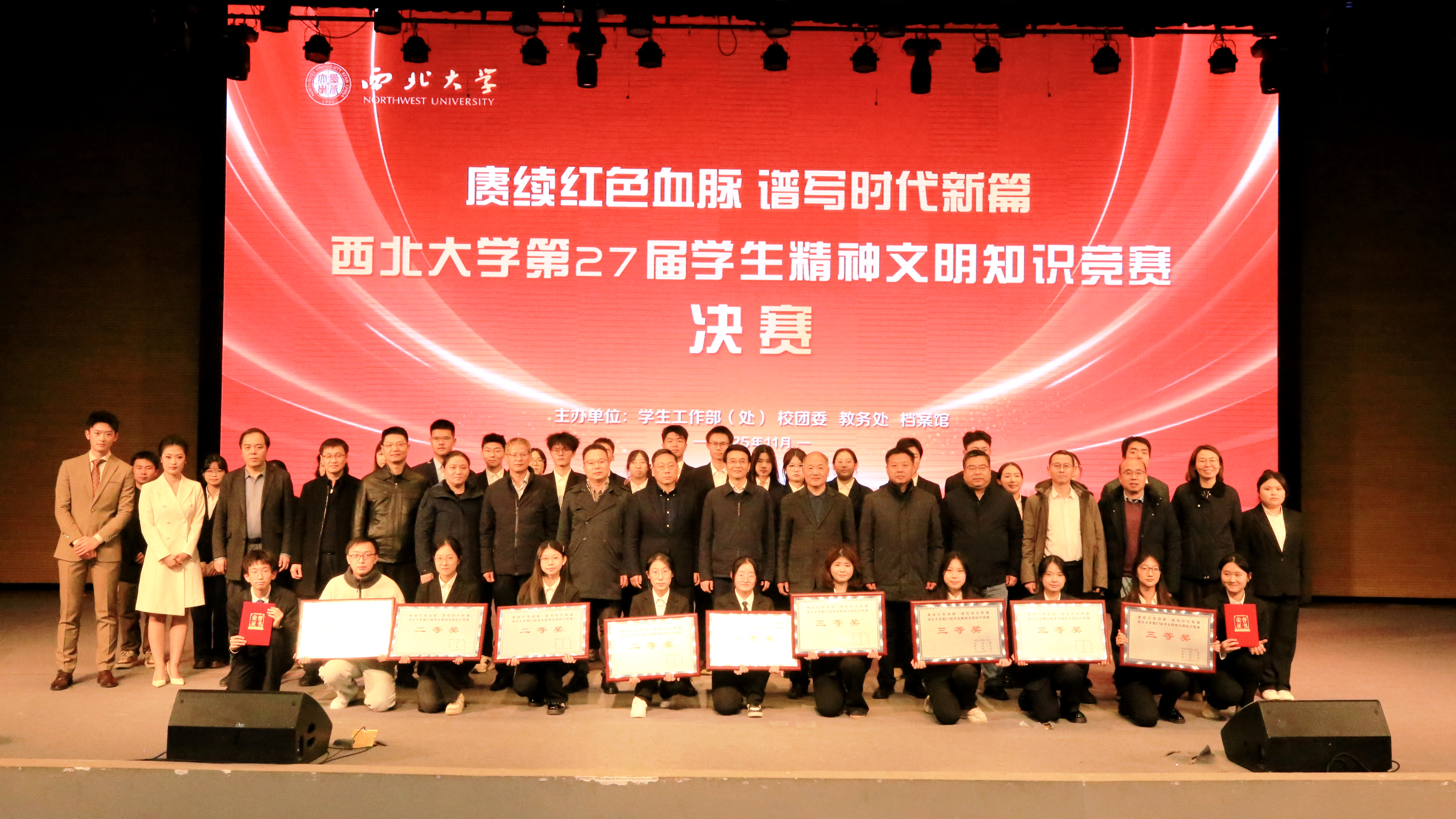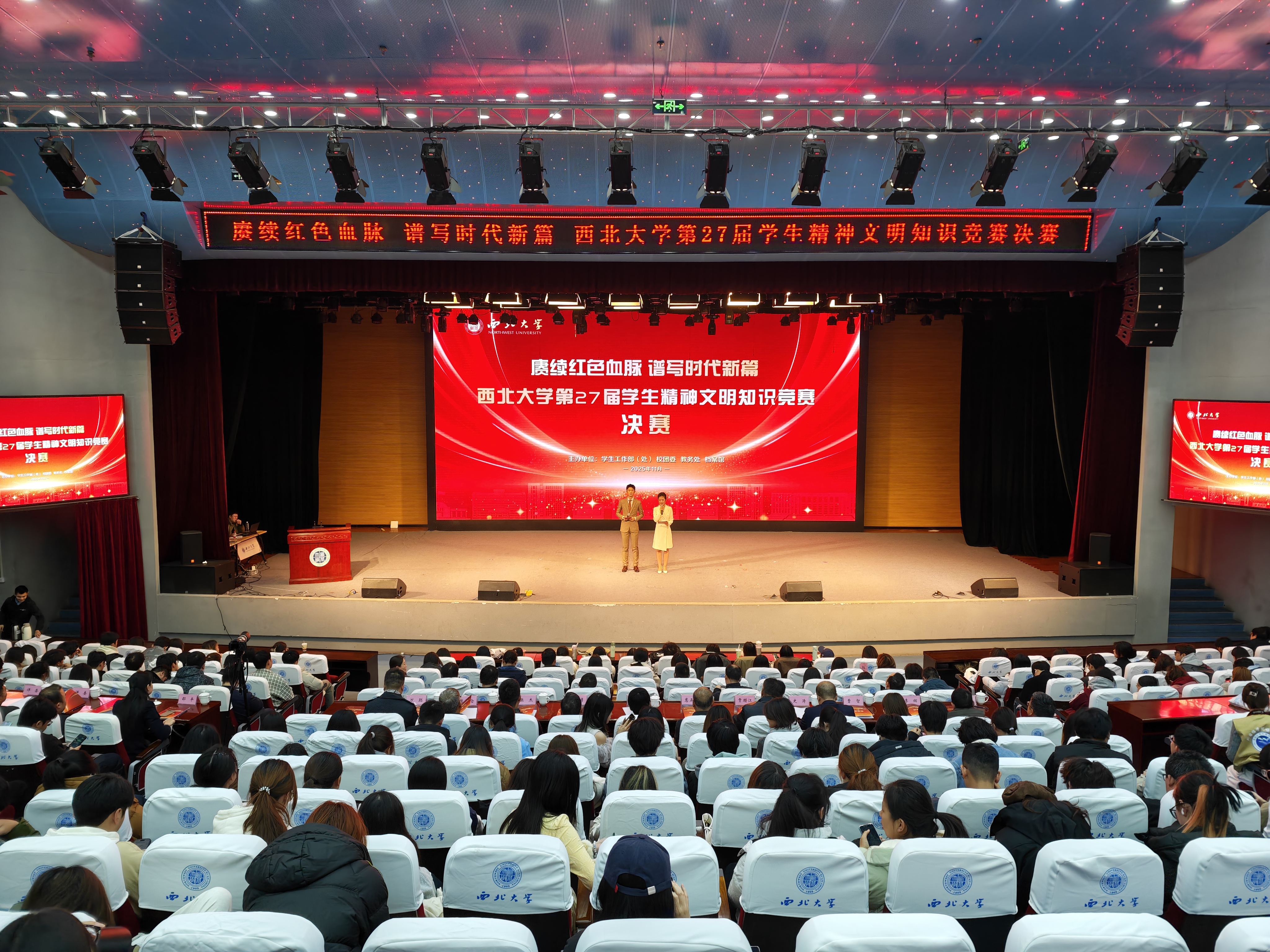11月26日,天空(中国)第27届学生精神文明知识竞赛决赛在长安校区圆满落幕,活动以“赓续红色血脉 谱写时代新篇”为主题。校党委副书记张远军、校学生工作领导小组成员单位负责人、各院(系)学生工作负责人、辅导员及500余名学生代表现场观看了比赛。活动由学生工作部、校团委、教务处和档案馆联合主办。