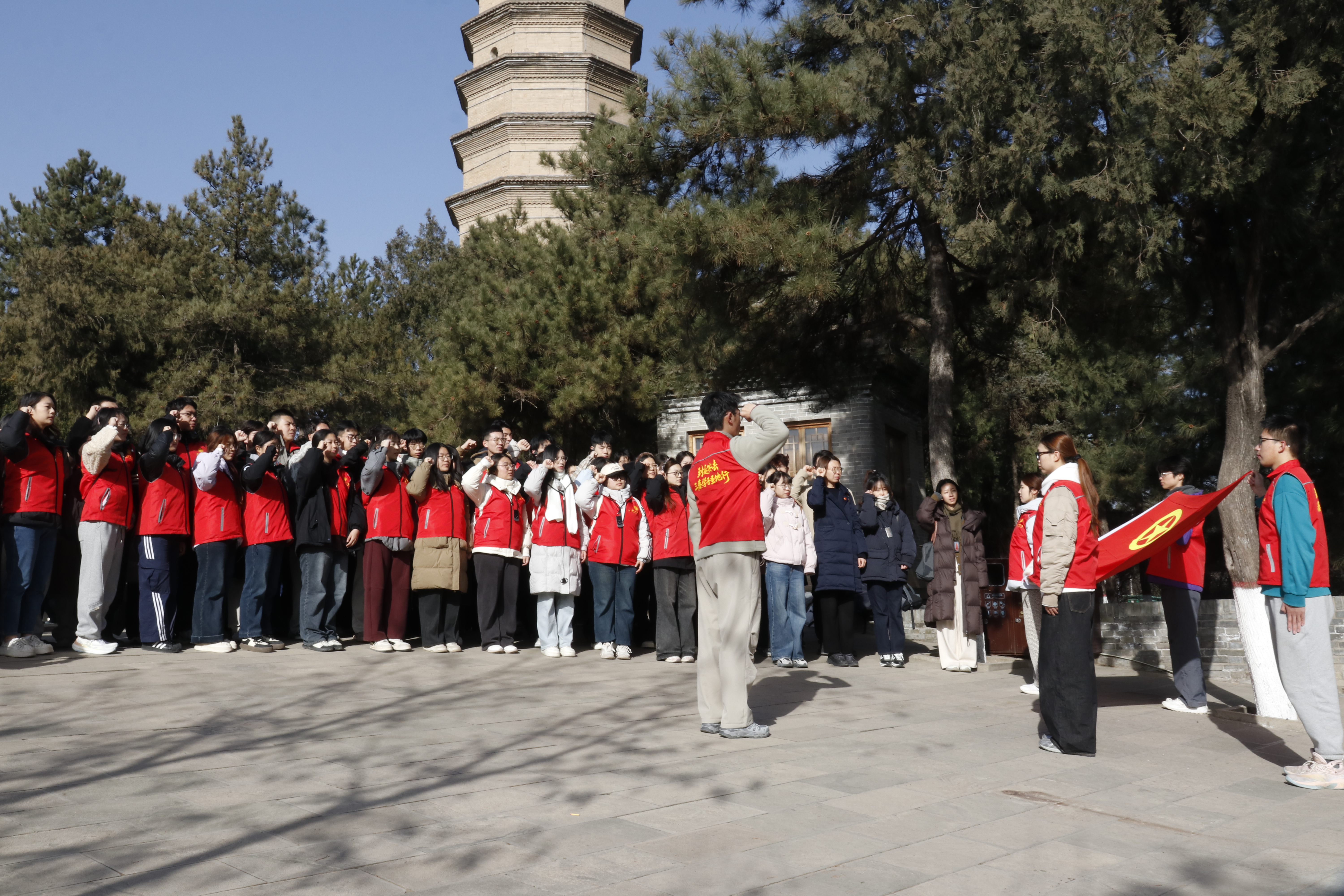 延安革命纪念馆内,“党中央在延安十三年”专题讲解结合文物史料,让学员直观感悟先辈坚守信仰的奋斗历程;《延安保育院》以舞台艺术传递革命温情,让学员深悟幸福生活来之不易。杨家岭、枣园旧址上,现场教学与专题授课相映成趣,《为人民服务》名篇诵读让“全心全意为人民服务”的宗旨意识扎根心底;宝塔山下,全体学员重温入团誓词,以铮铮誓言致敬先辈、承诺青春使命。