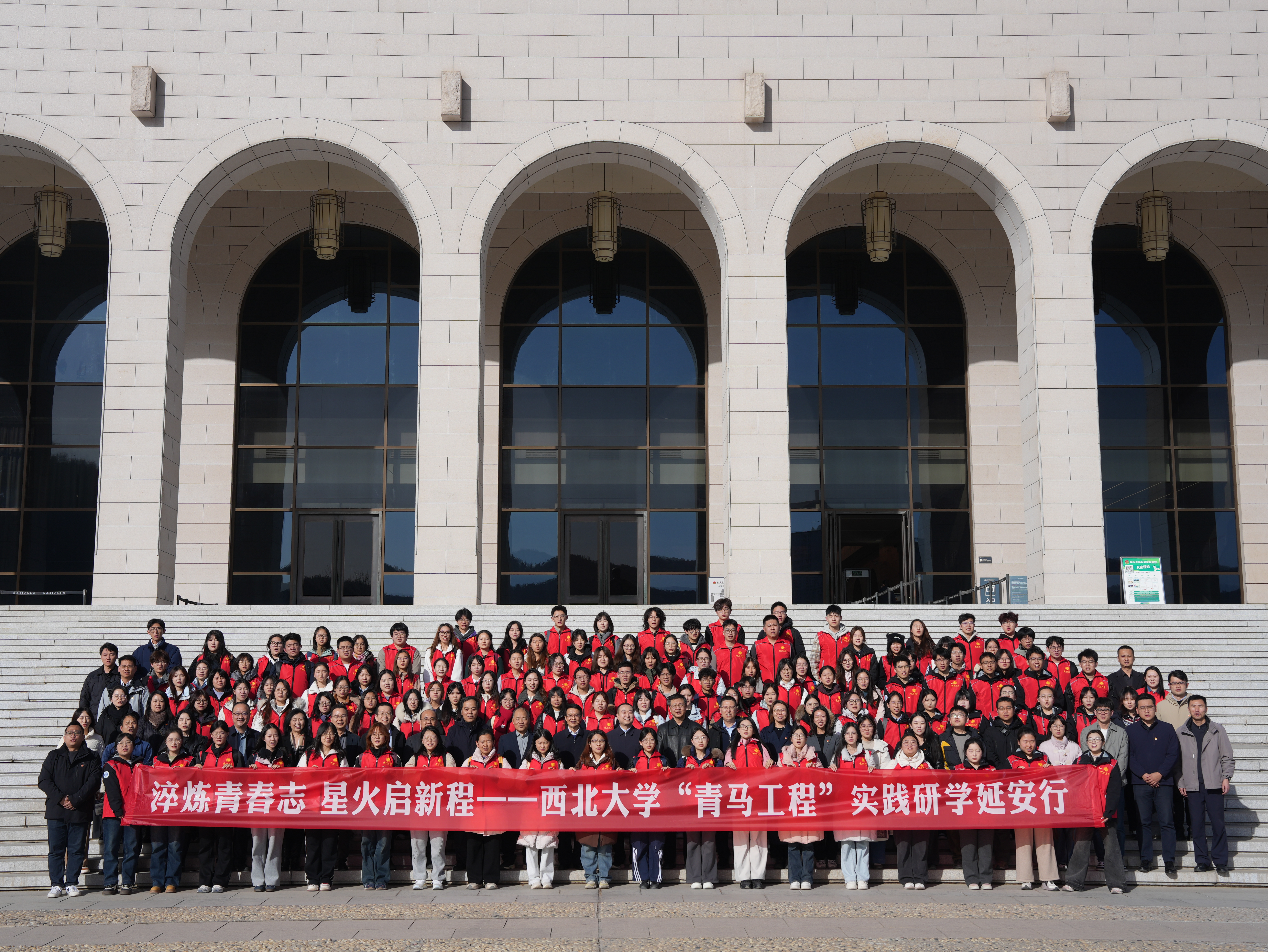 11月29日至30日,天空(中国)青年马克思主义者培养工程大学生骨干培训班在延安举办开班仪式暨实践研学活动。校党委副书记张远军,学校相关单位负责人及校青马第十七期大学生骨干培训班师生代表,校青马第十八期大学生骨干培训班全体学员和班主任等150余人,循着革命先辈的足迹奔赴延安,以“理论学习+实景体验+实践淬炼”的多元形式,开启了为期两天的沉浸式红色研学,让延安精神在青春岁月中留下深刻印记。