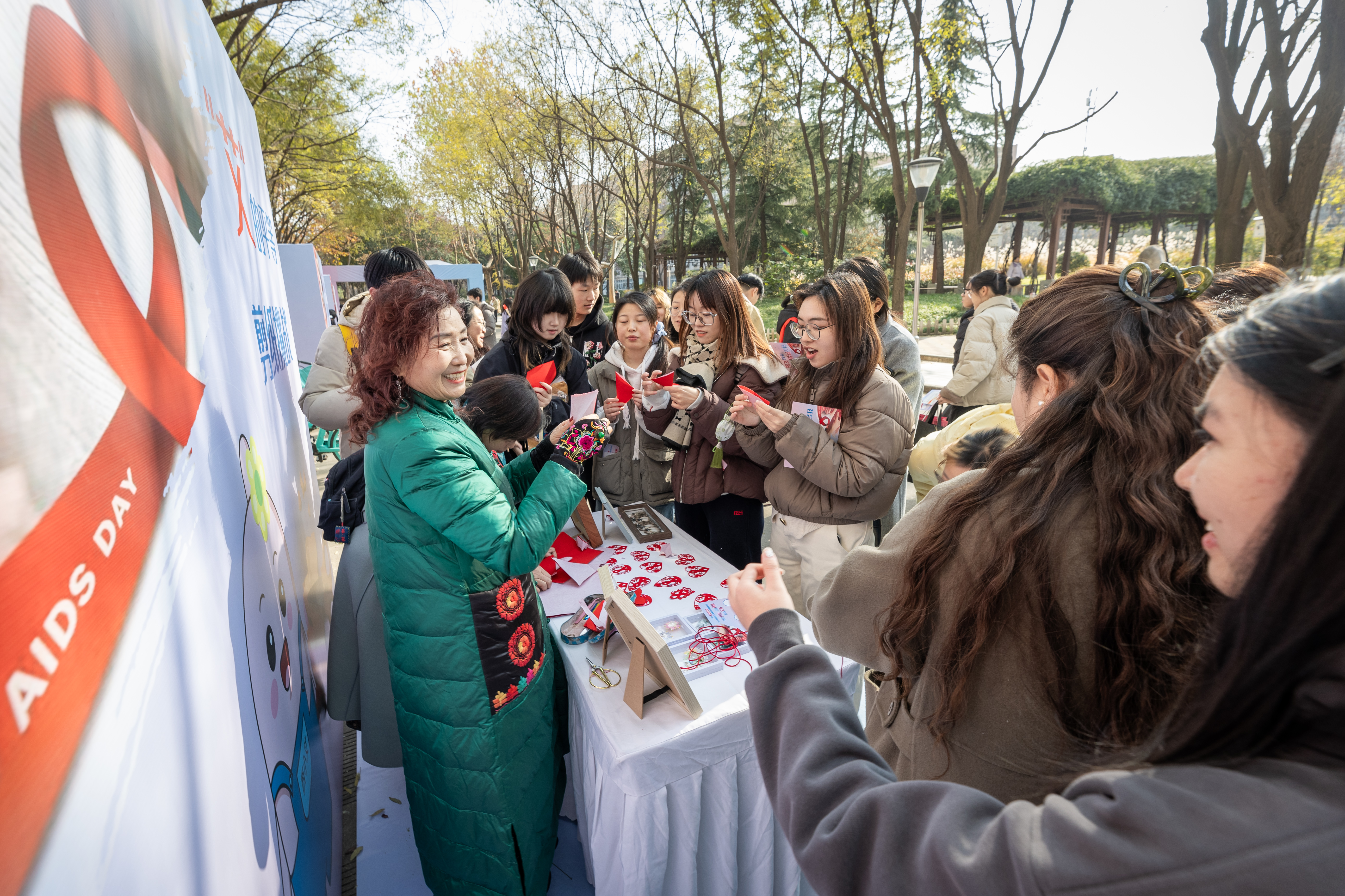 活动以多元创新形式传递防艾理念,构建沉浸式宣传场景。视频回顾了“2025年西安市防艾讲师大赛”优秀作品,生动定格了师生积极投身防艾宣传的精彩瞬间;“防艾非遗大秀”将传统技艺与防艾主题深度融合,以匠心诠释关怀守护寓意,以作品传递“防艾不防爱”的公益理念;“爱无界·防艾行”互动打卡定向赛,将防艾知识融入趣味互动。