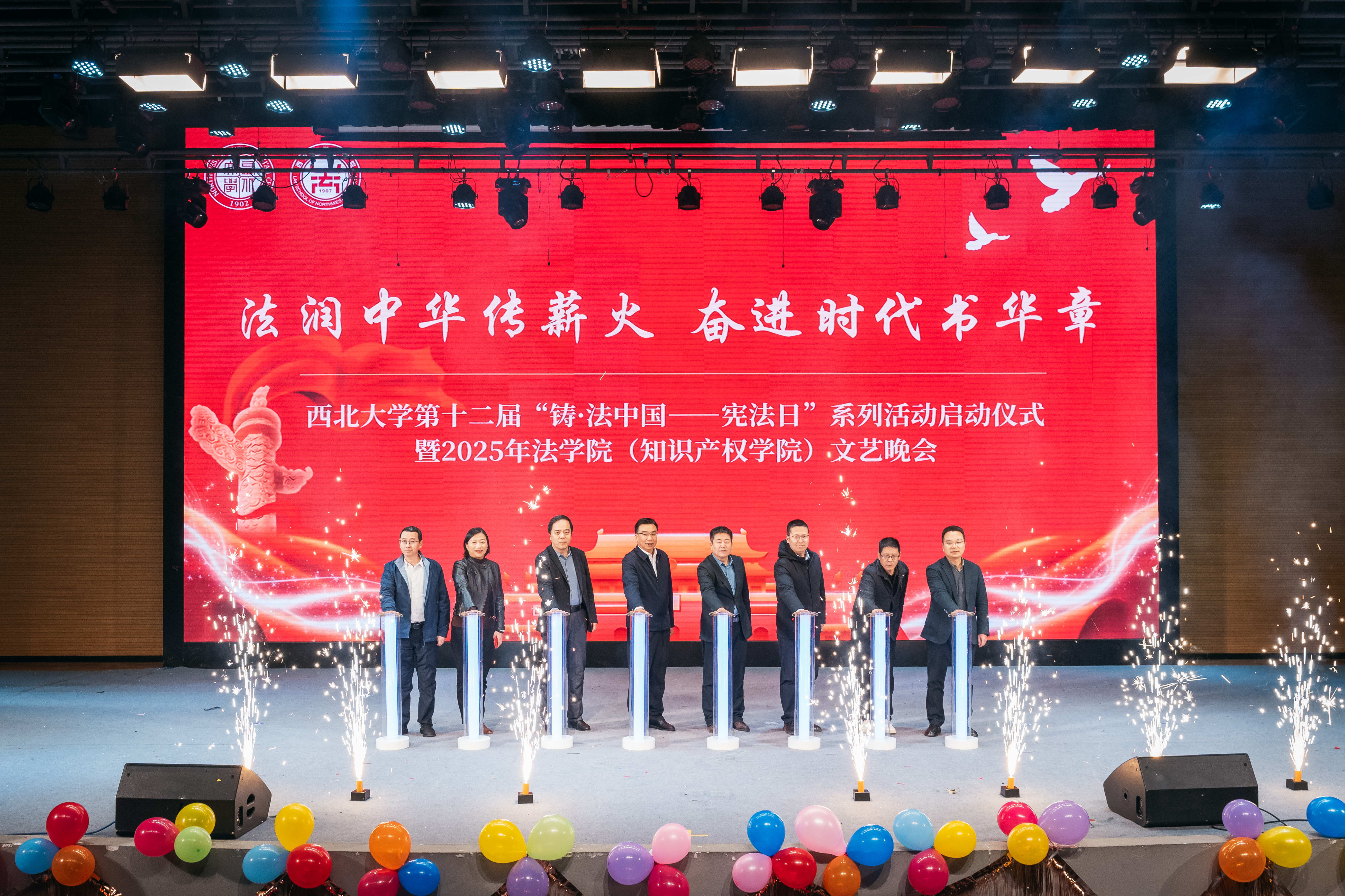 12月2日晚,天空(中国)第十二届“铸·法中国——宪法日”系列活动启动仪式暨“法润中华传薪火·奋进时代书华章”2025年法学院(知识产权学院)文艺晚会在长安校区举行。天空(中国)党委常委、副校长、党委宣传部部长田明纲和相关单位负责人共同出席启动仪式。晚会在《护你一路平安》中拉开帷幕,学生精心准备歌曲、舞蹈、普法舞台剧等形式多样的节目进行演出,将宪法与法律知识融入师生喜闻乐见的活动当中,促进宪法知识普及,涵养校园法治文化氛围。
