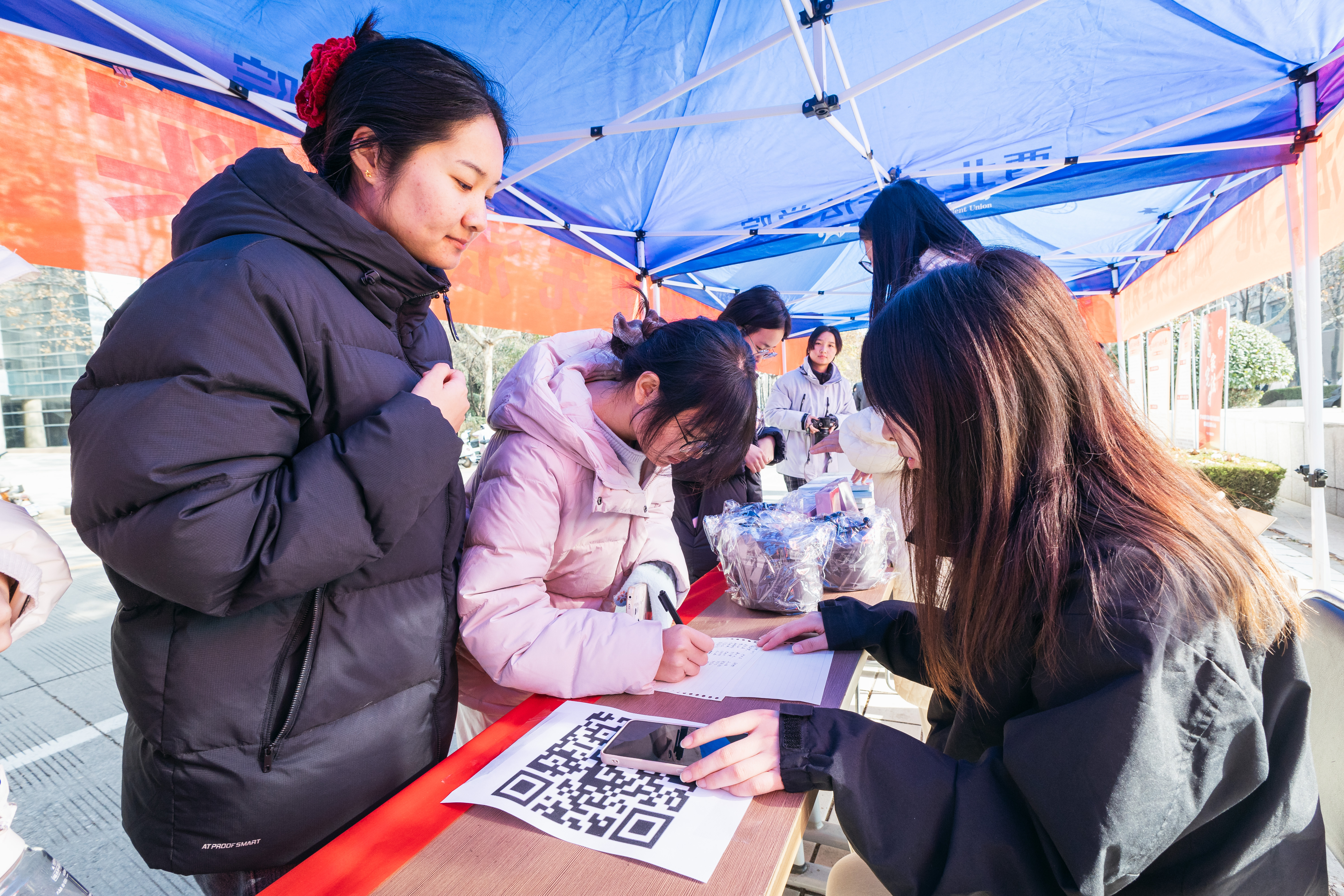 12月4日中午,学校在校内开展普法宣传外展活动。活动现场通过发放宪法知识手册、宪法知识问答、主题活动签名等方式鼓励师生积极学习宪法知识,营造尊法、学法、守法、用法的浓厚氛围。外展活动包含各种活泼生动的宪法知识小游戏,在潜移默化中传递依法治国理念。校长孙庆伟,校党委副书记赵作纽、张远军,副校长田明纲到场参加活动。