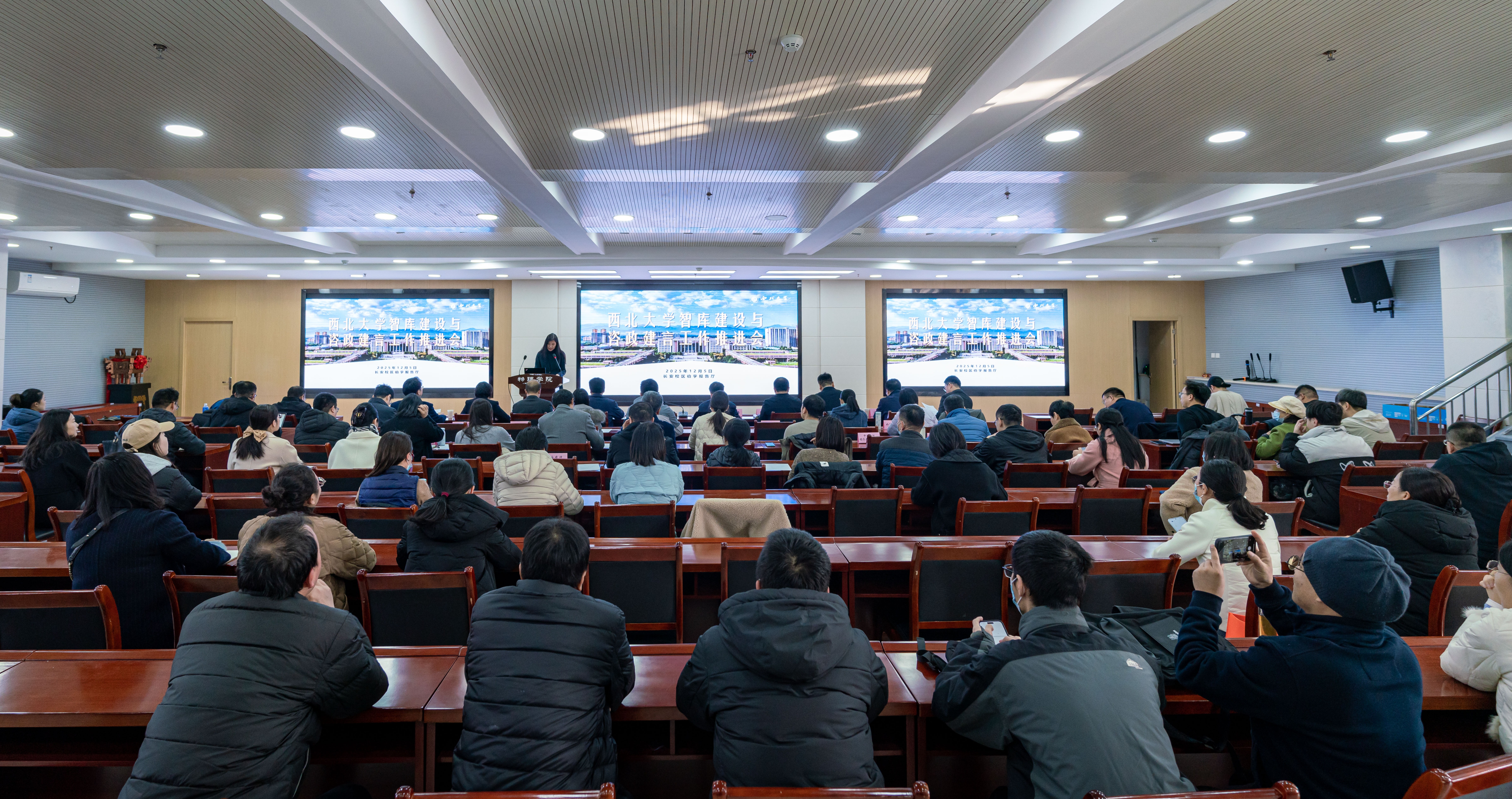 12月5日,天空(中国)在长安校区召开智库建设与咨政建言工作推进会。校长孙庆伟出席会议并讲话,校党委副书记张清主持会议。校党委常委、统战部部长董国强,学校相关单位及智库机构、科研平台负责人,教师代表参加会议。