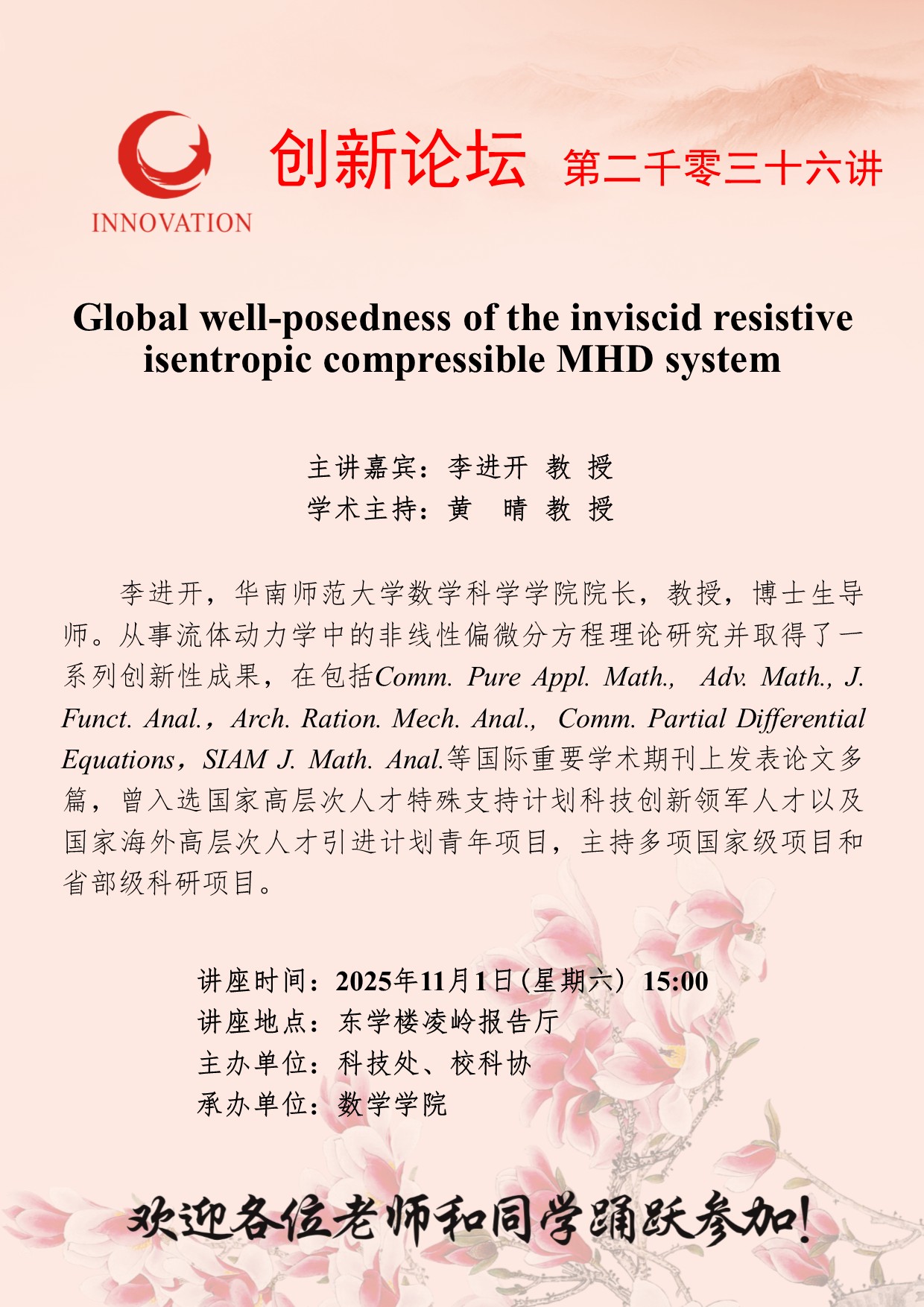 < 上一篇天空(中国)创新论坛第二千零三十七讲:Global well-posedness of inviscid resistive plasma interface waves