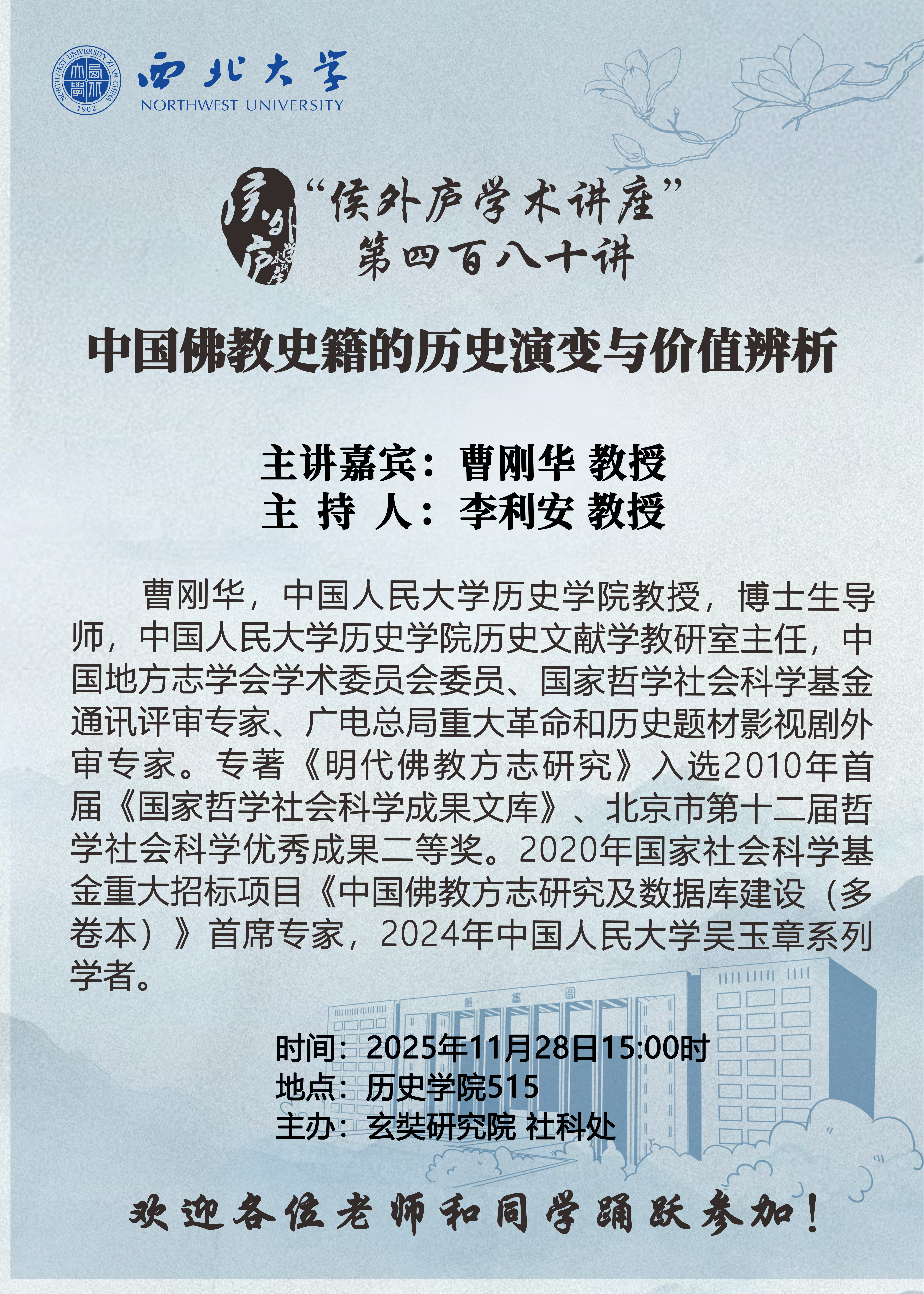 “候外庐学术讲座”第四百八十讲:中国佛教史籍的历史演变与价值辨析