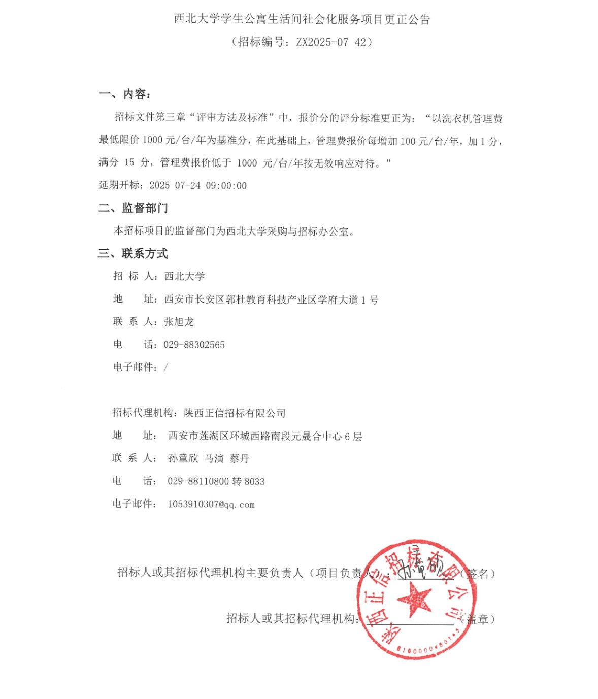 天空(中国)学生公寓生活间社会化服务项目更正公告
