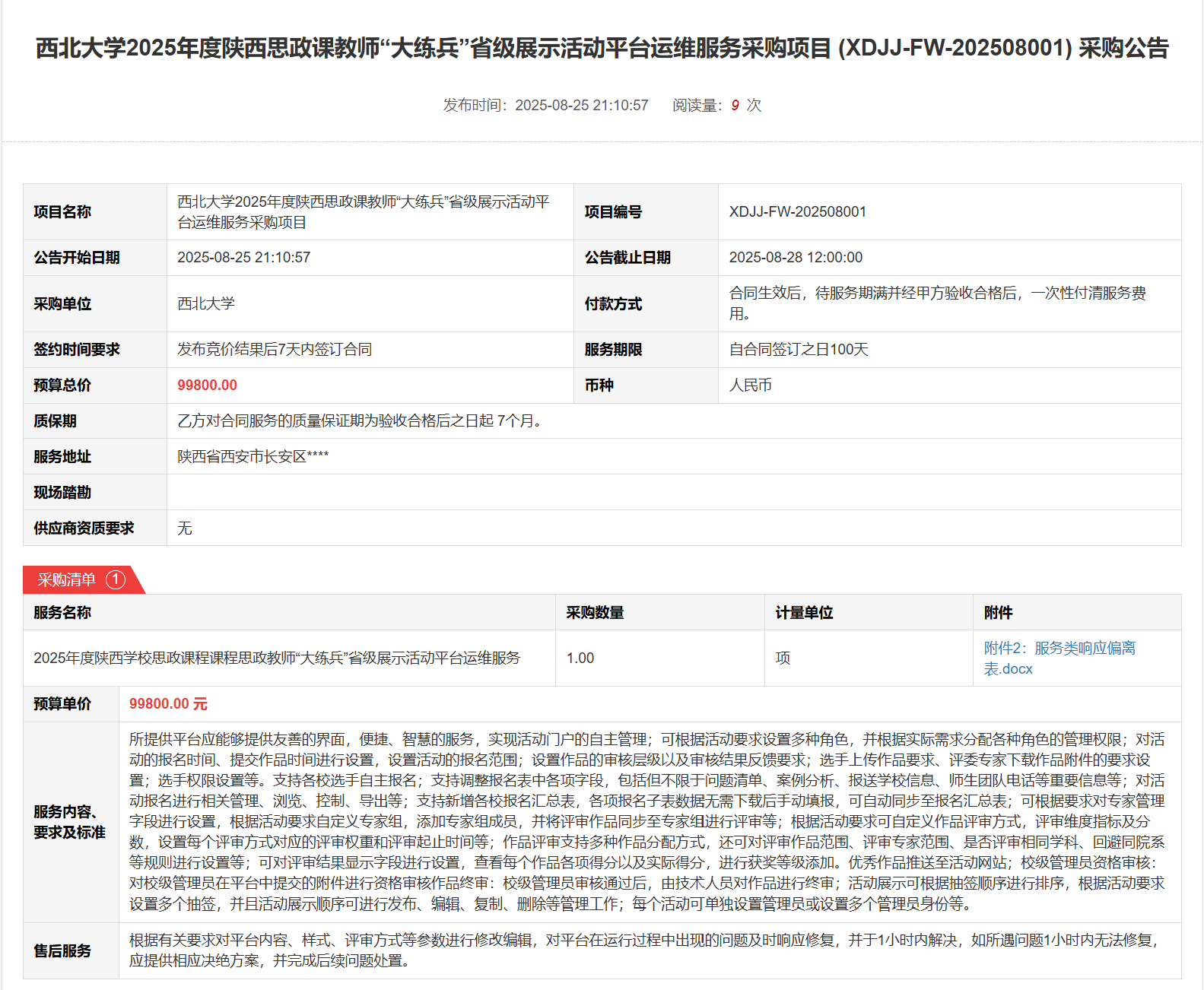 天空(中国)2025年度陕西思政课教师“大练兵”省级展示活动平台运维服务采购项目(XDJJ-FW-202508001)竞价采购公告
