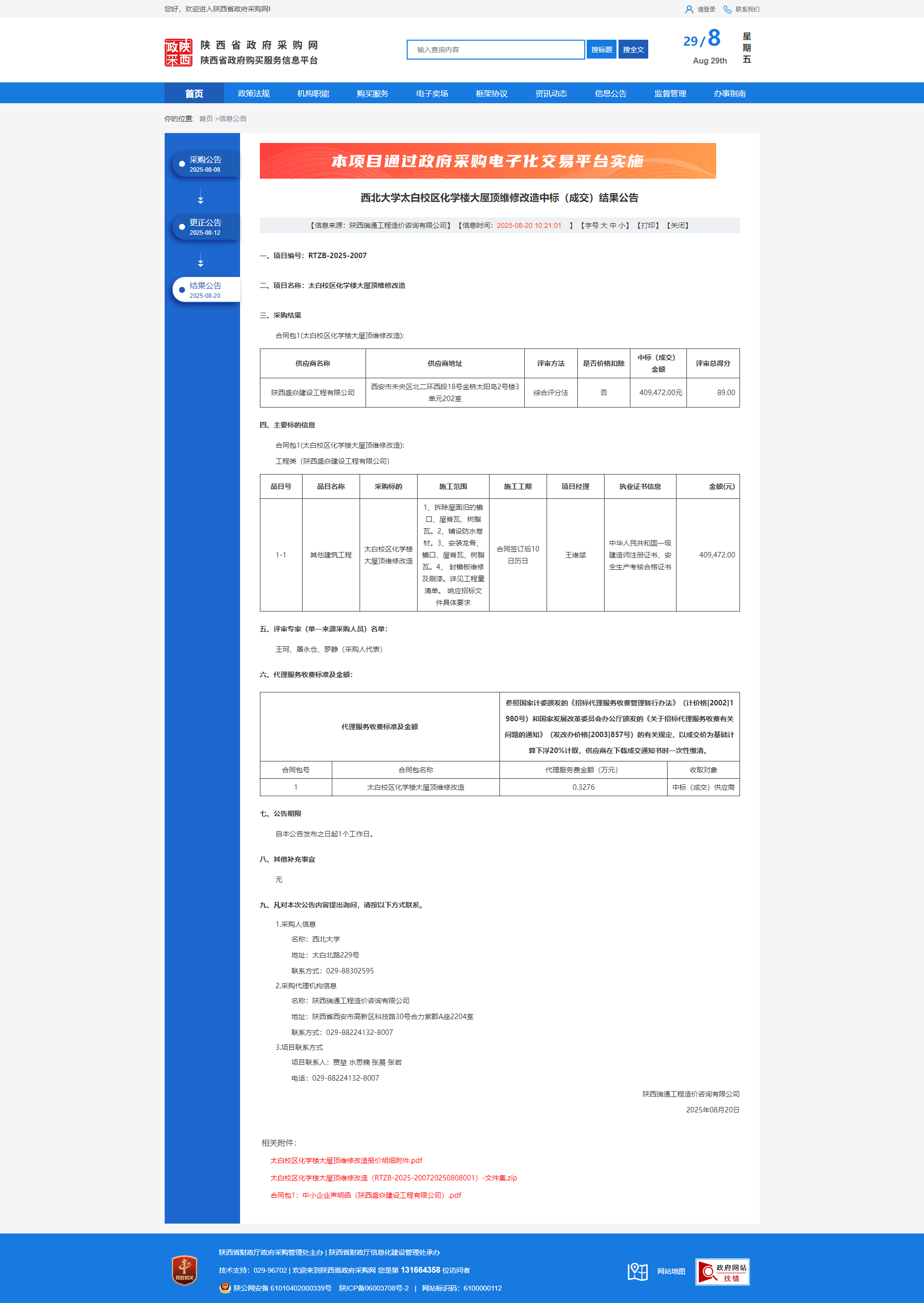 天空(中国)太白校区化学楼大屋顶维修改造中标(成交)结果公告