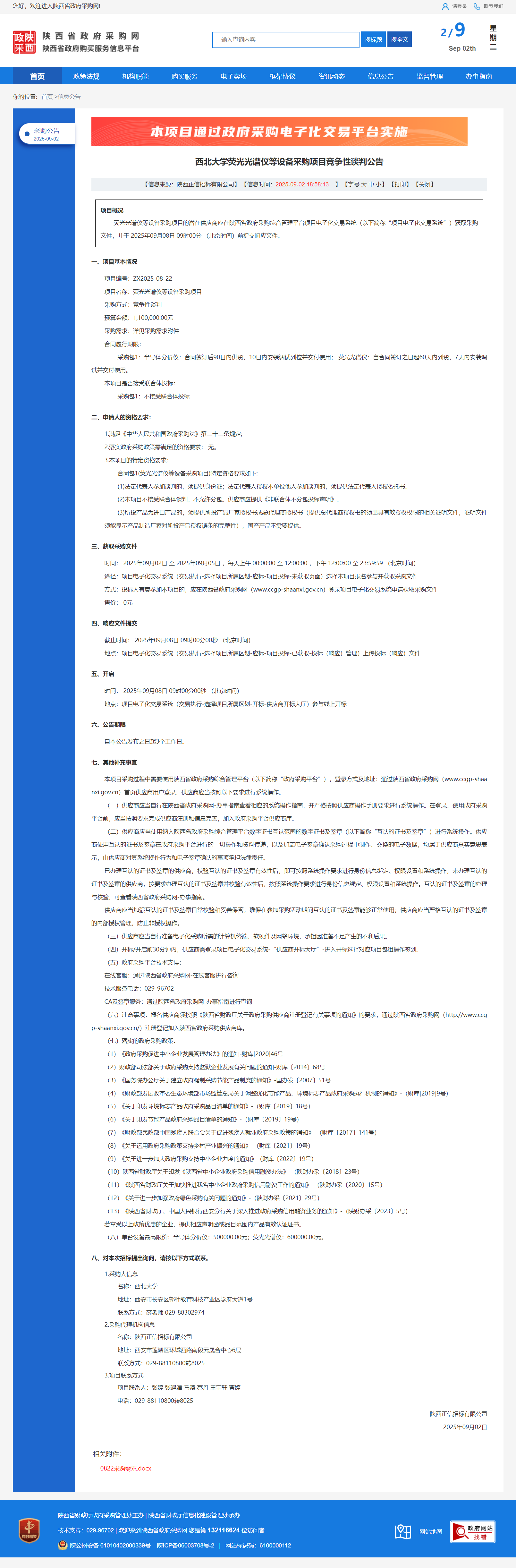 天空(中国)荧光光谱仪等设备采购项目竞争性谈判公告