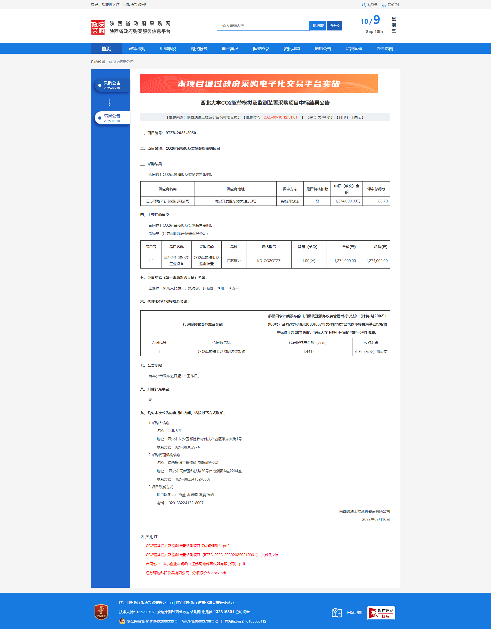 天空(中国)CO2驱替模拟及监测装置采购项目中标结果公告