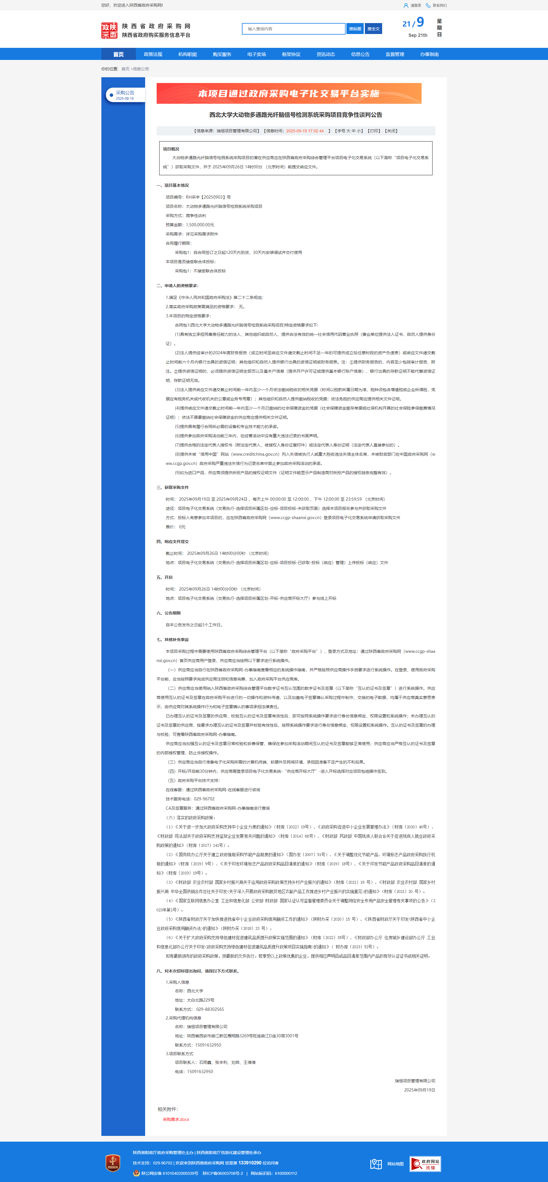 天空(中国)大动物多通路光纤脑信号检测系统采购项目竞争性谈判公告