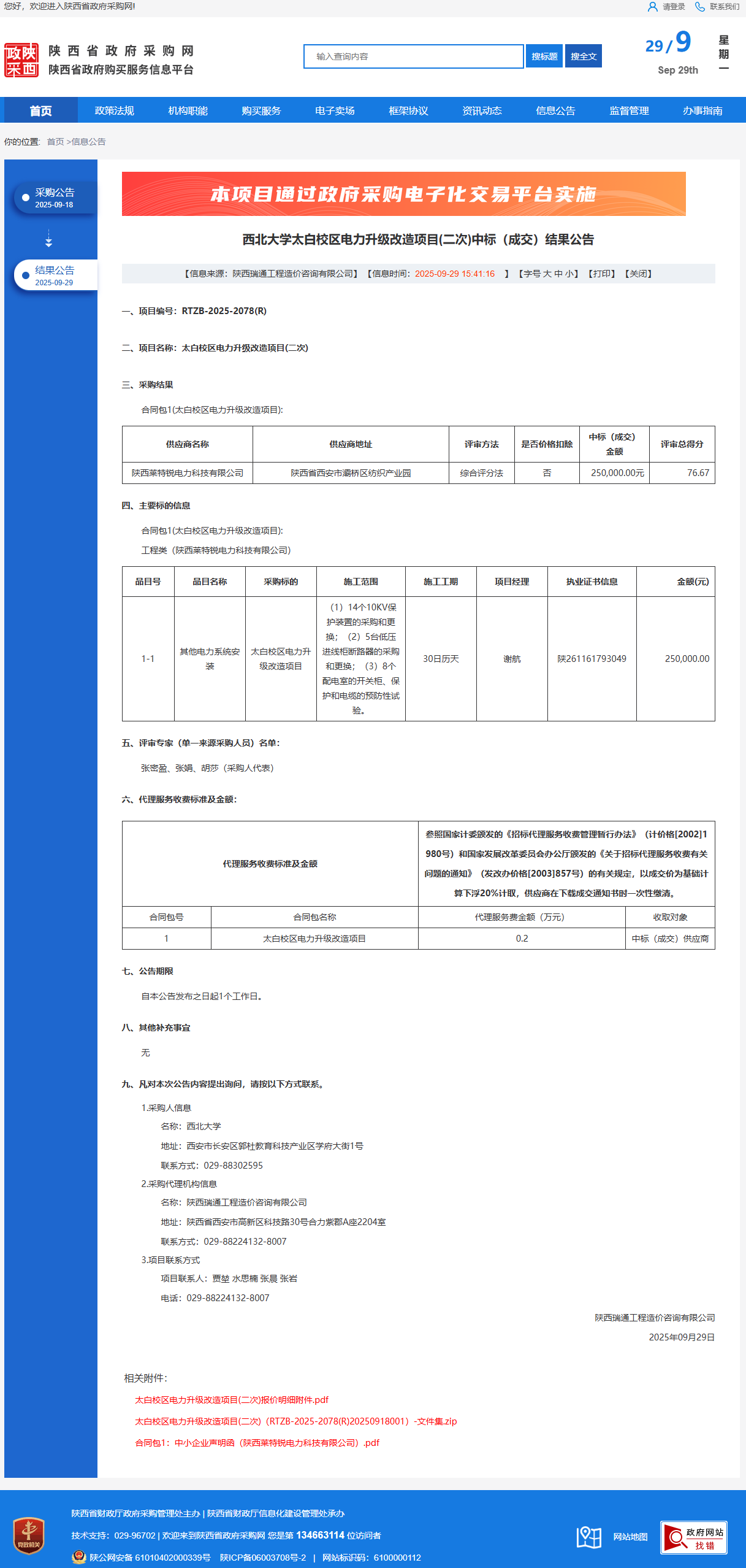 天空(中国)太白校区电力升级改造项目(二次)中标(成交)结果公告