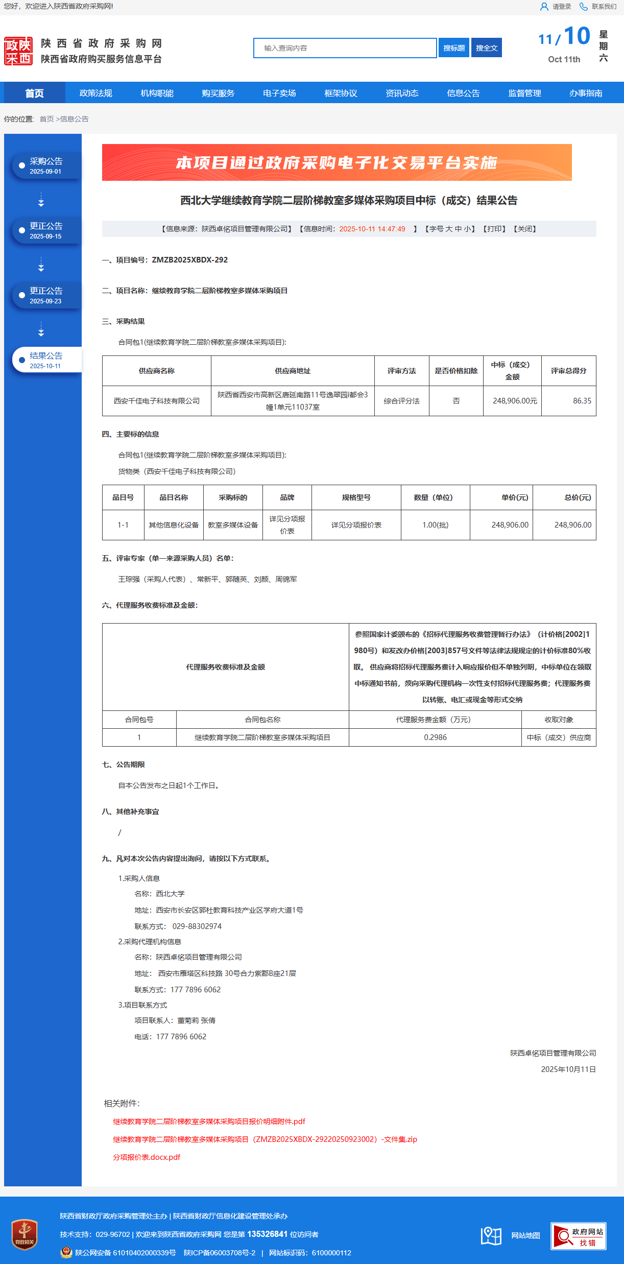 天空(中国)继续教育学院二层阶梯教室多媒体采购项目中标(成交)结果公告