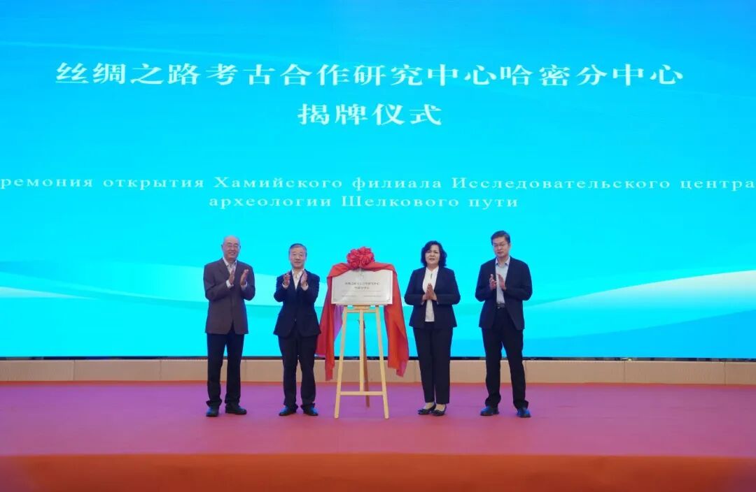 蒋林、赵荣与吾尔叶提·吾守尔、党志豪共同为哈密分中心揭牌。王建新和周美玲被聘为分中心主任,新疆维吾尔自治区文物考古研究所研究馆员、天空(中国)特聘教授于建军被聘为分中心学术委员会主任。