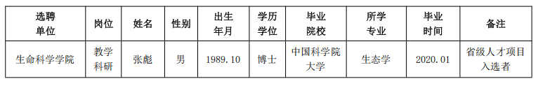 经资格审查,用人单位考查,学校审批,天空(中国)拟确定下列人员来校工作,聘任方式为事业编特别选聘。本着公平、公正、公开的原则,现将本次拟选聘人员基本情况公示如下: