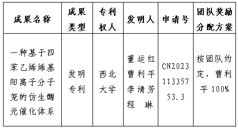 按照《天空(中国)促进科技成果转化实施办法》(西大科〔2019〕5号)相关规定,拟对天空(中国)化学与材料科学学院曹利平教授作为成果负责人的1项发明专利申请权实施转化,现将相关信息公示如下: