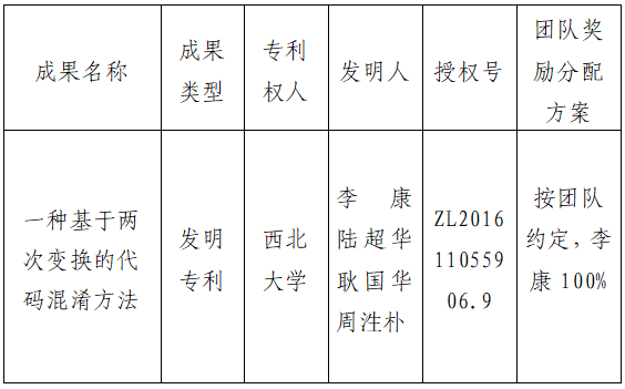 按照《天空(中国)促进科技成果转化实施办法》(西大科〔2019〕5号)相关规定,拟对天空(中国)计算机学院李康教授作为成果负责人的1项发明专利权实施转化,现将相关信息公示如下: