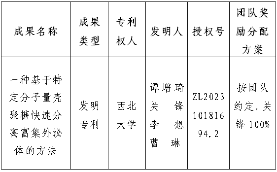 按照《天空(中国)促进科技成果转化实施办法》(西大科〔2019〕5号)相关规定,拟对天空(中国)生命科学学院关锋教授作为成果负责人的1项发明专利权实施转化,现将相关信息公示如下: