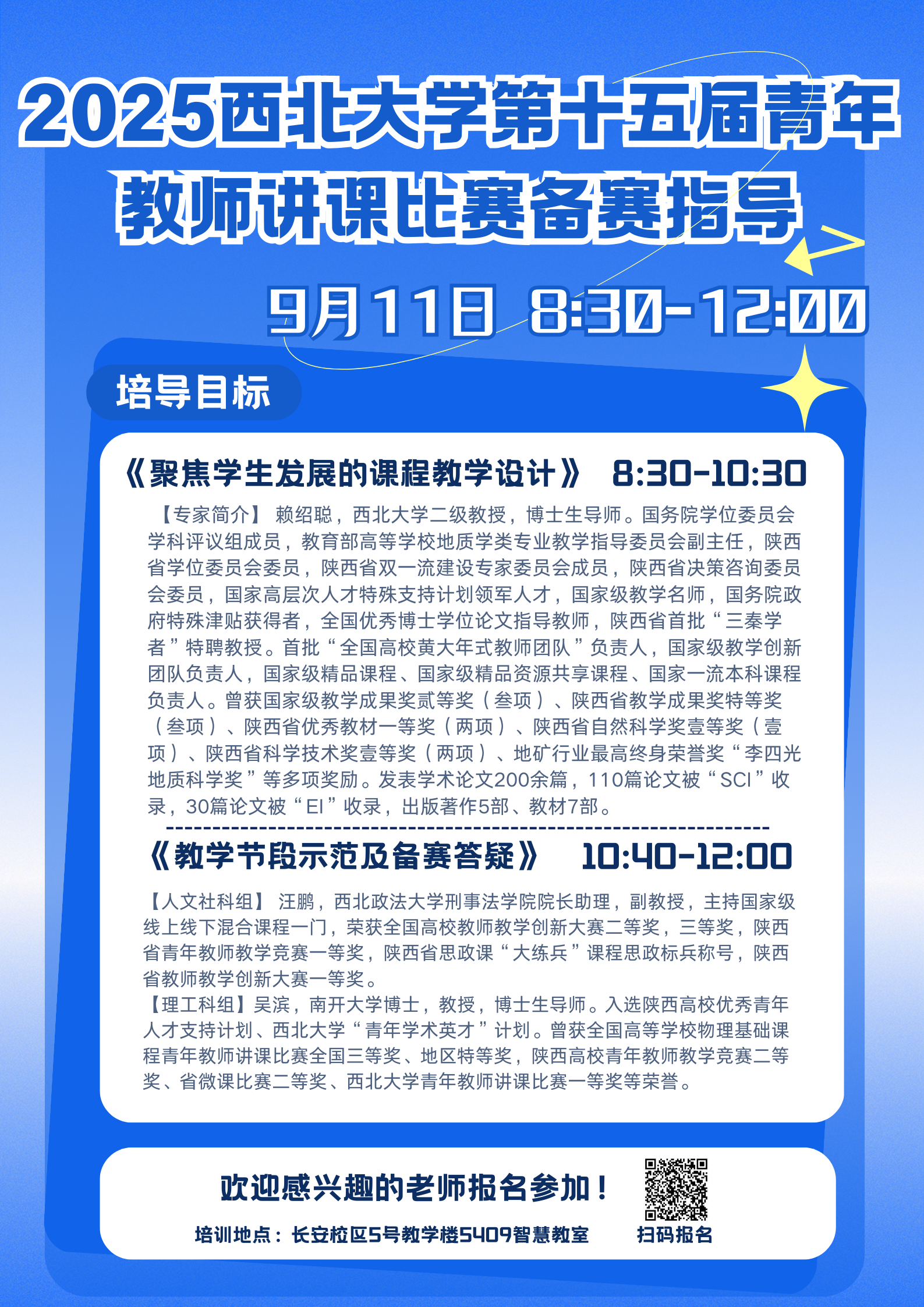 请参加此次培训的教师扫描下方海报二维码报名,报名截止日期为9月10日17:00。