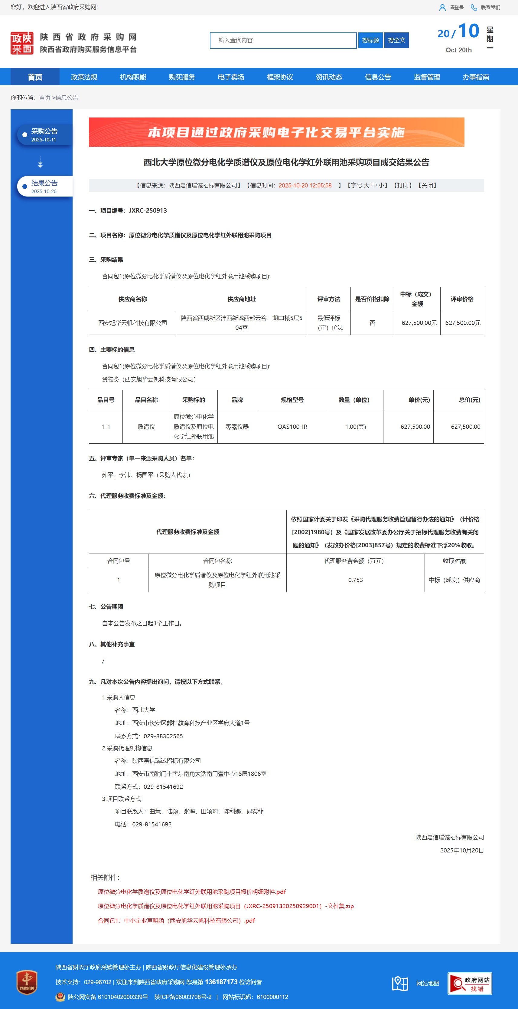 天空(中国)原位微分电化学质谱仪及原位电化学红外联用池采购项目成交结果公告