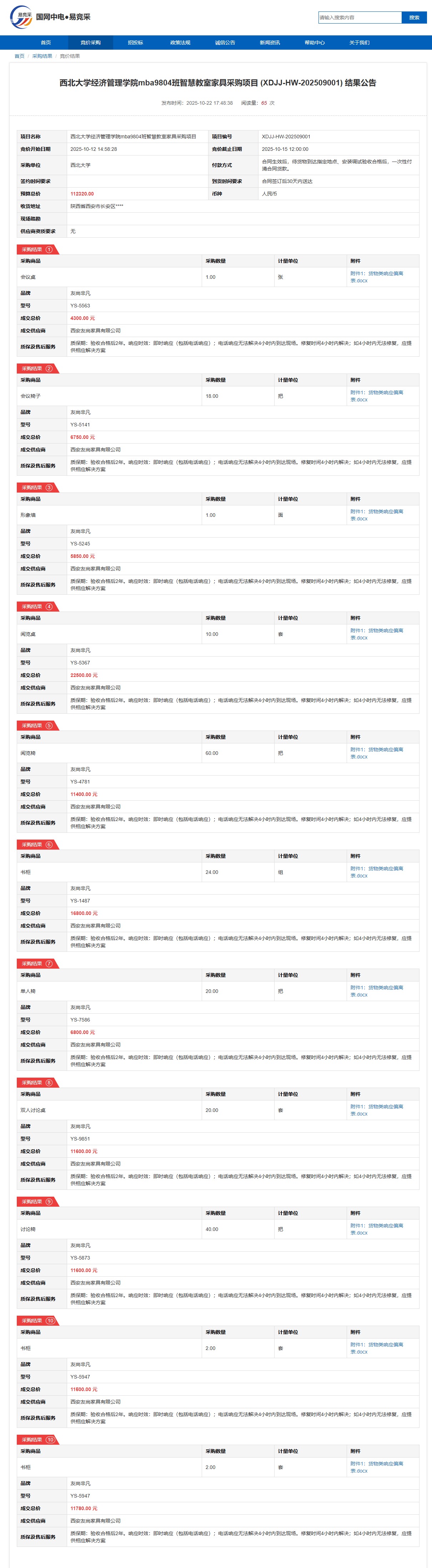 天空(中国)经济管理学院mba9804班智慧教室家具采购项目(XDJJ-HW-202509001)竞价结果公告