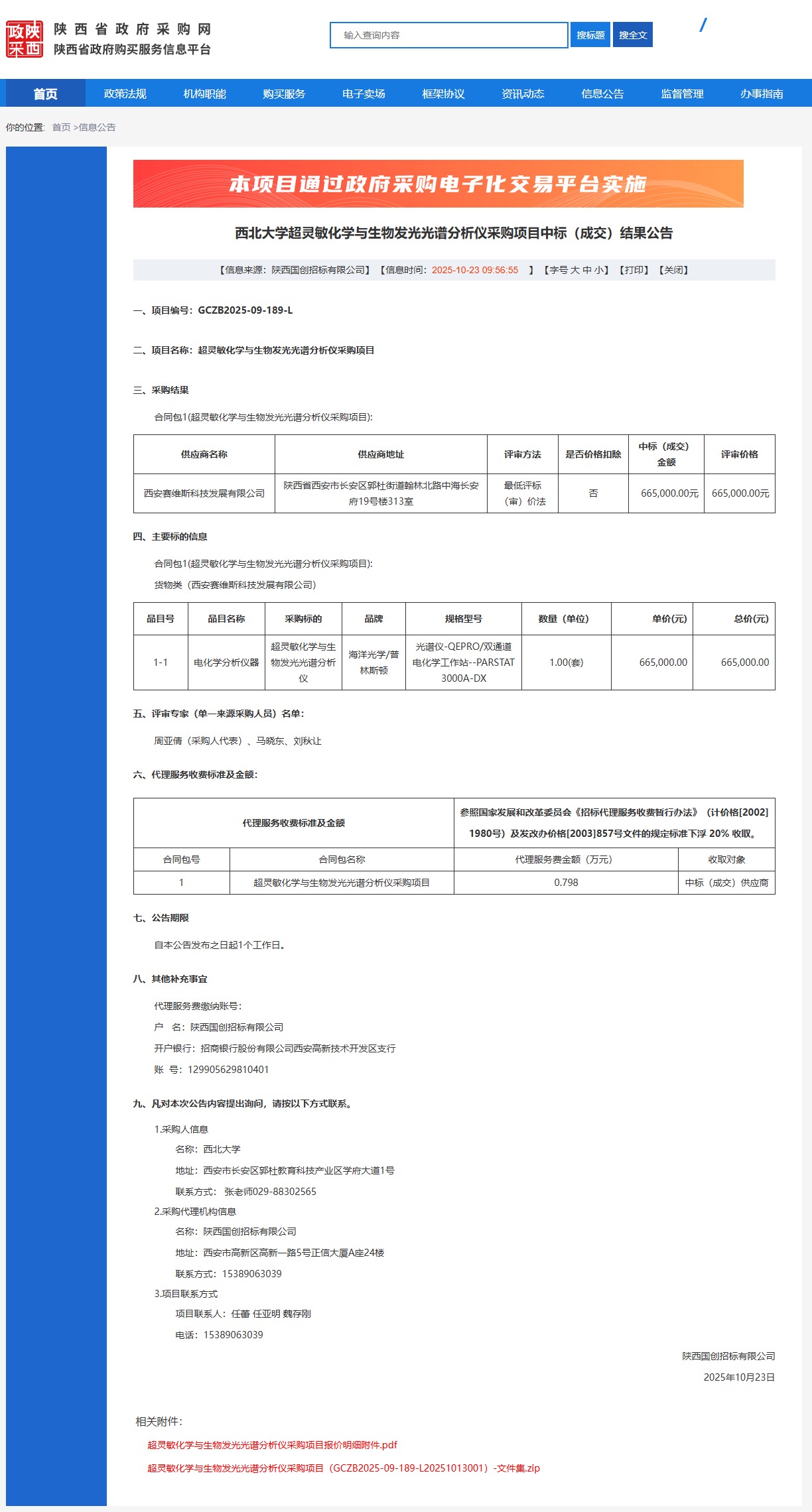 天空(中国)超灵敏化学与生物发光光谱分析仪采购项目中标(成交)结果公告