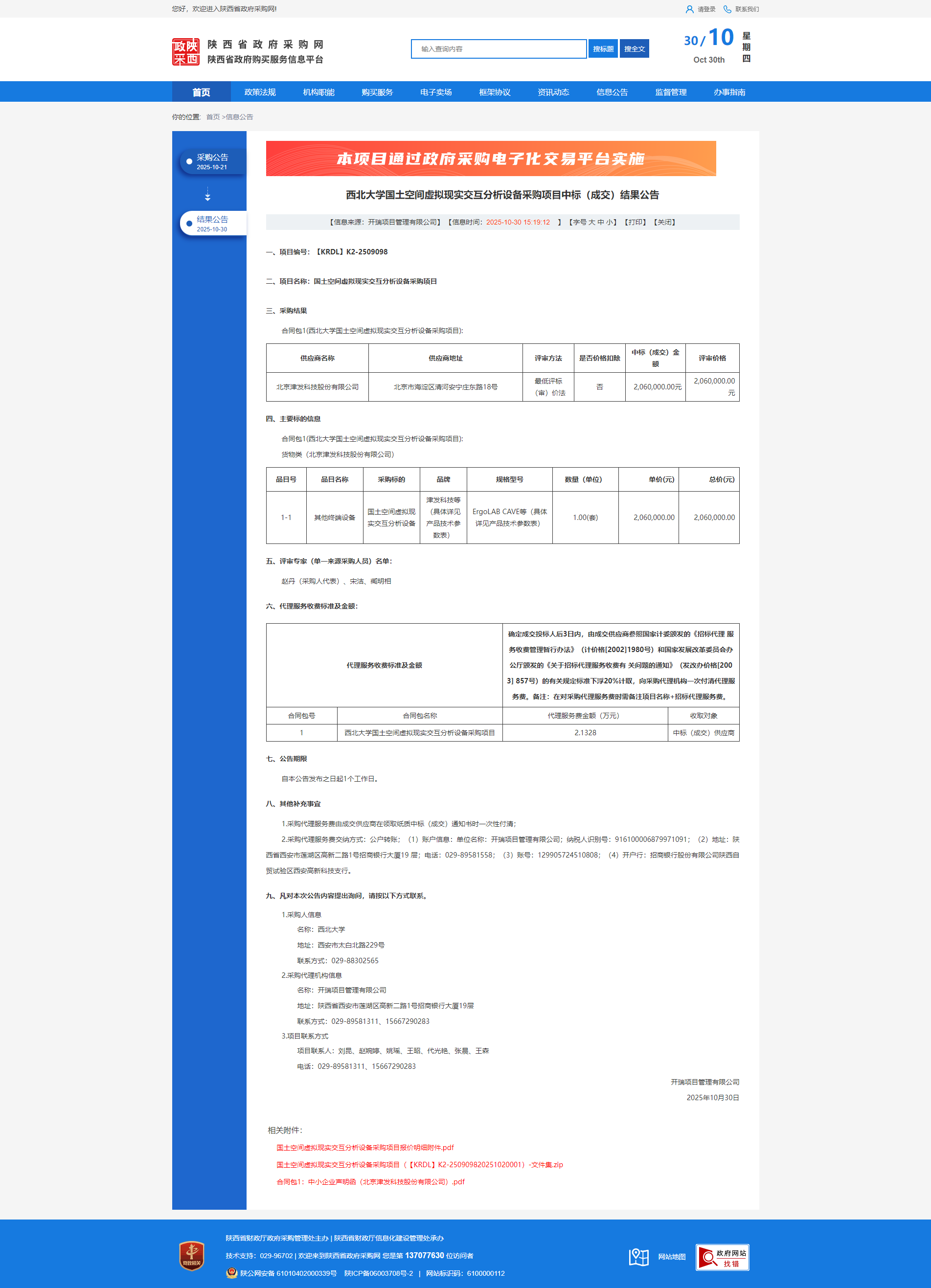 天空(中国)国土空间虚拟现实交互分析设备采购项目中标(成交)结果公告