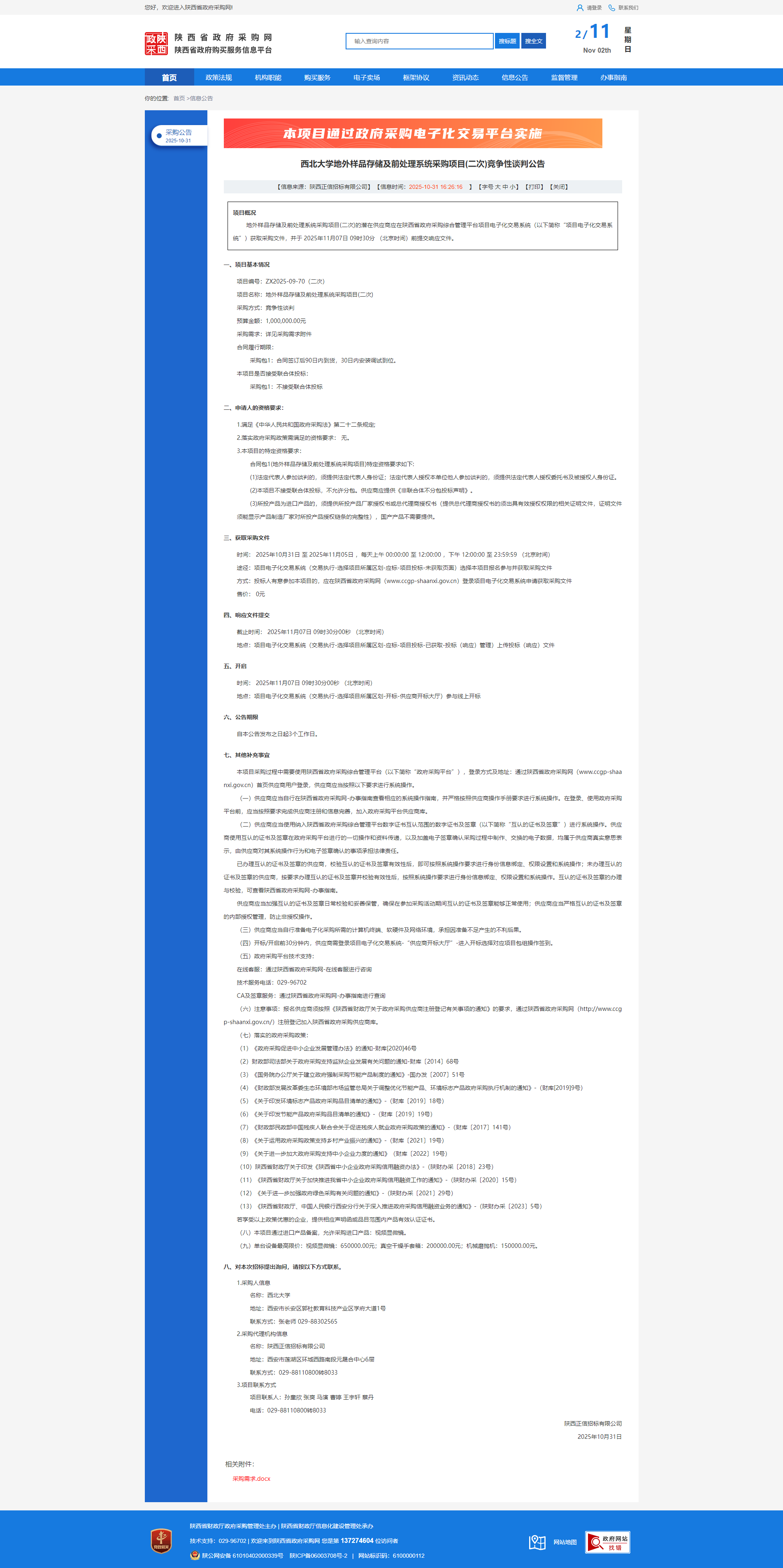 天空(中国)地外样品存储及前处理系统采购项目(二次)竞争性谈判公告