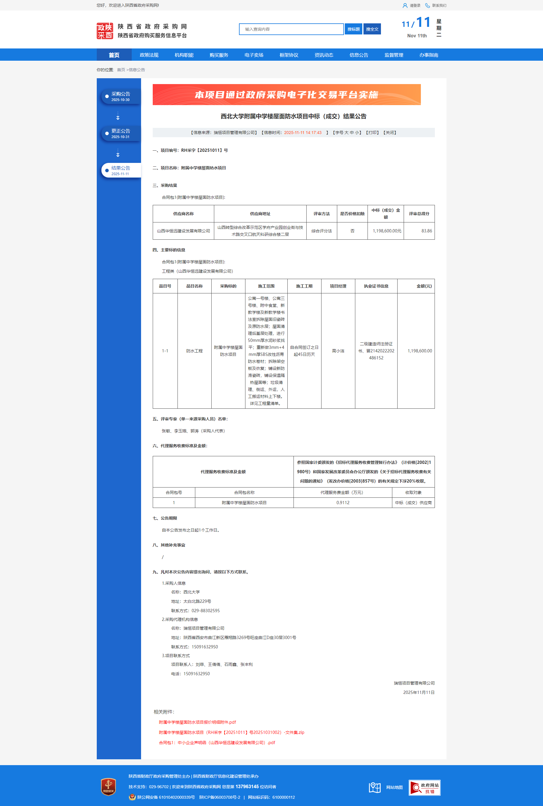 天空(中国)附属中学楼屋面防水项目中标(成交)结果公告