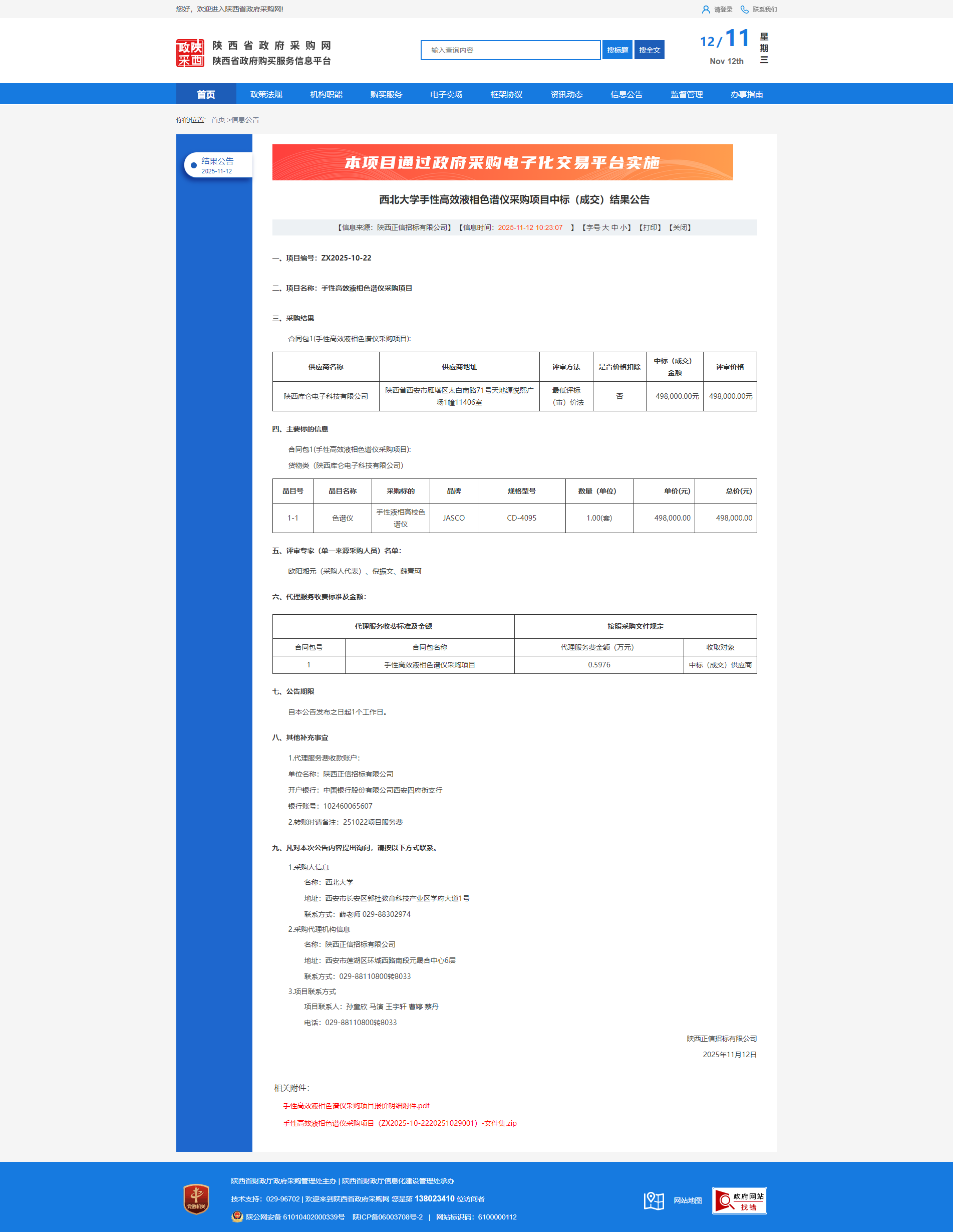 天空(中国)手性高效液相色谱仪采购项目中标(成交)结果公告