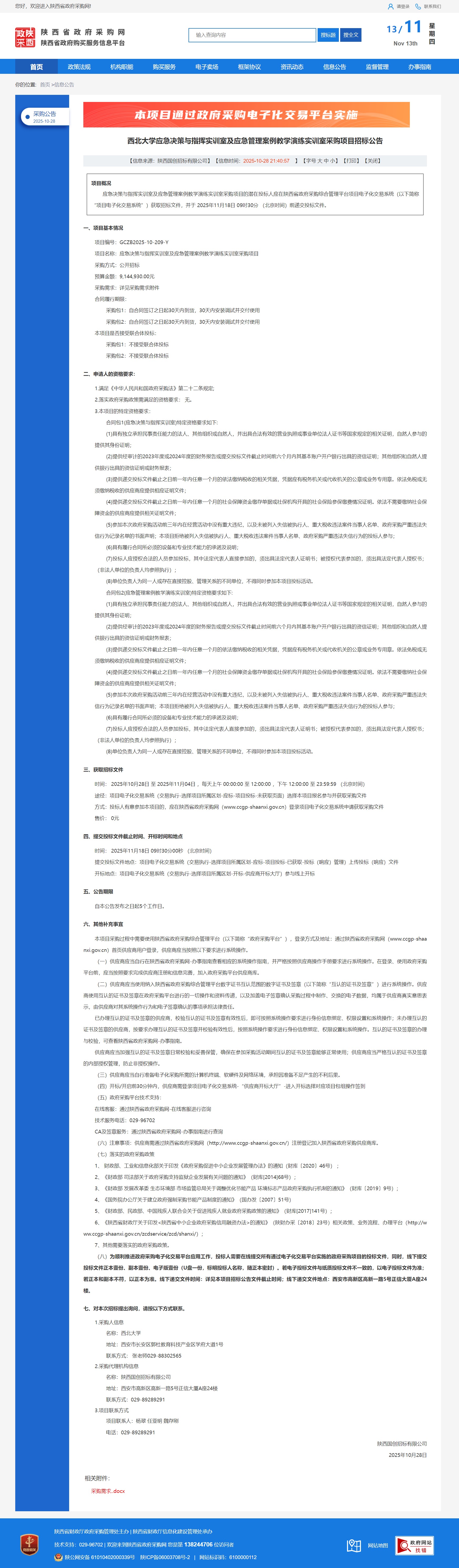 天空(中国)应急决策与指挥实训室及应急管理案例教学演练实训室采购项目招标公告
