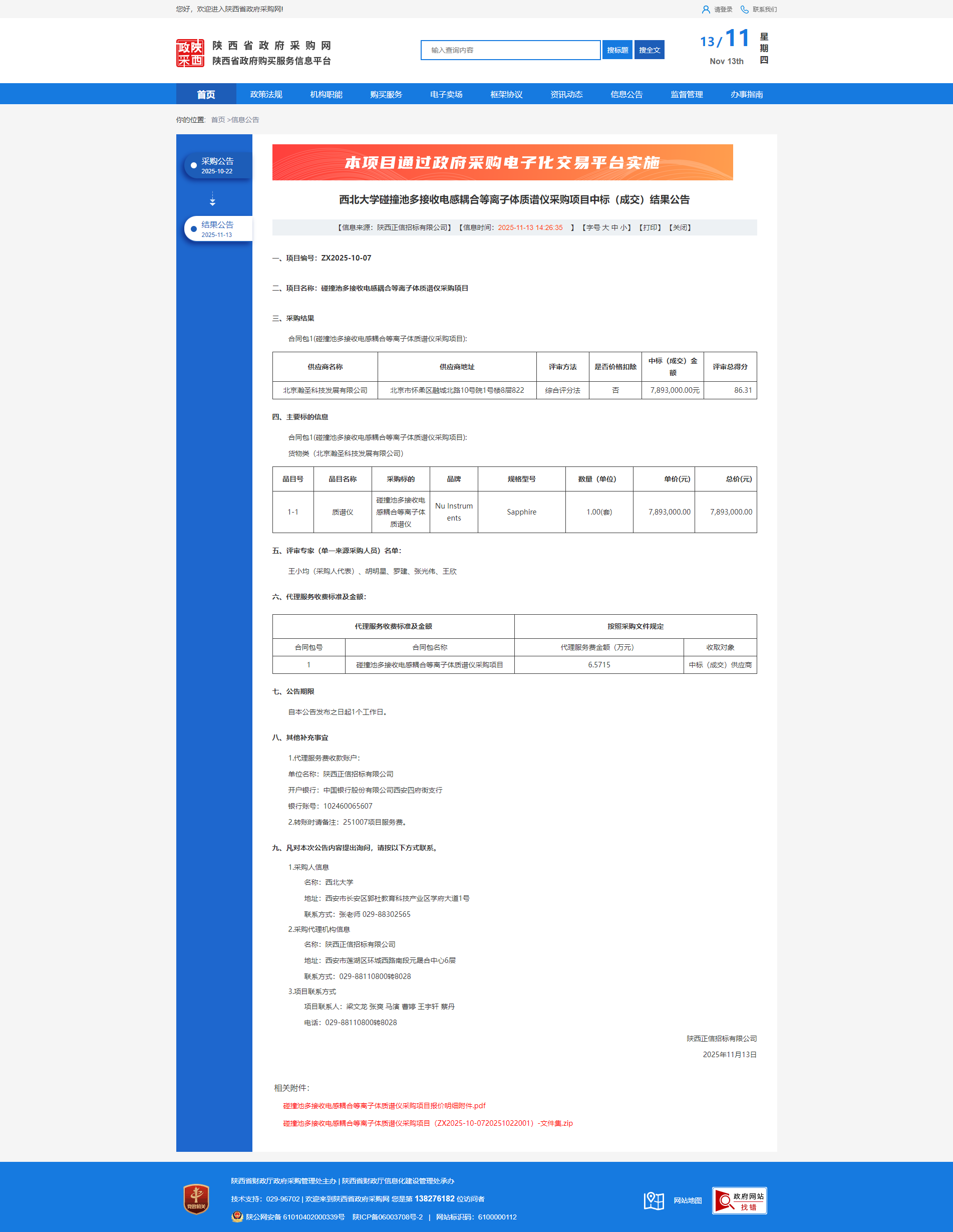 天空(中国)碰撞池多接收电感耦合等离子体质谱仪采购项目中标(成交)结果公告