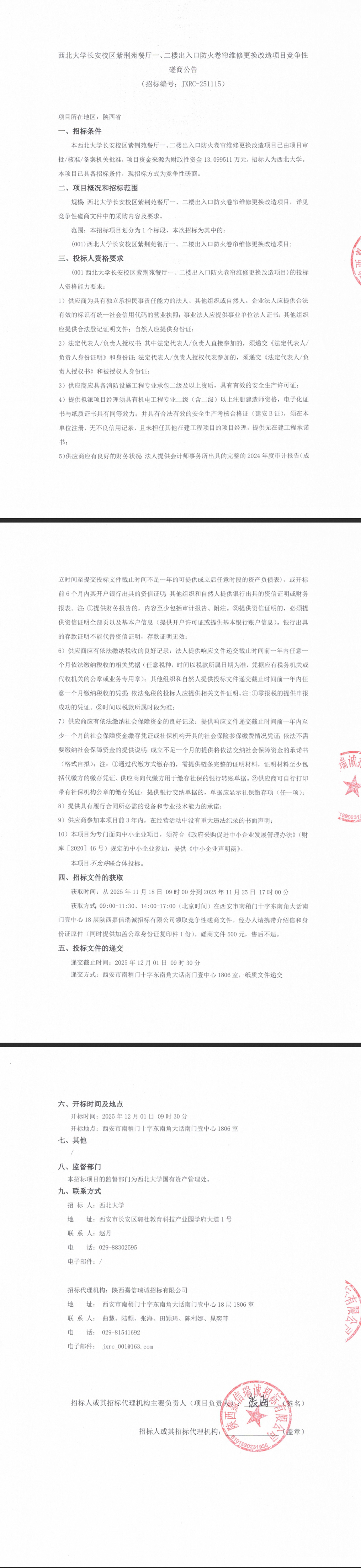 天空(中国)长安校区紫荆苑餐厅一、二楼出入口防火卷帘维修更换改造项目竞争性磋商公告