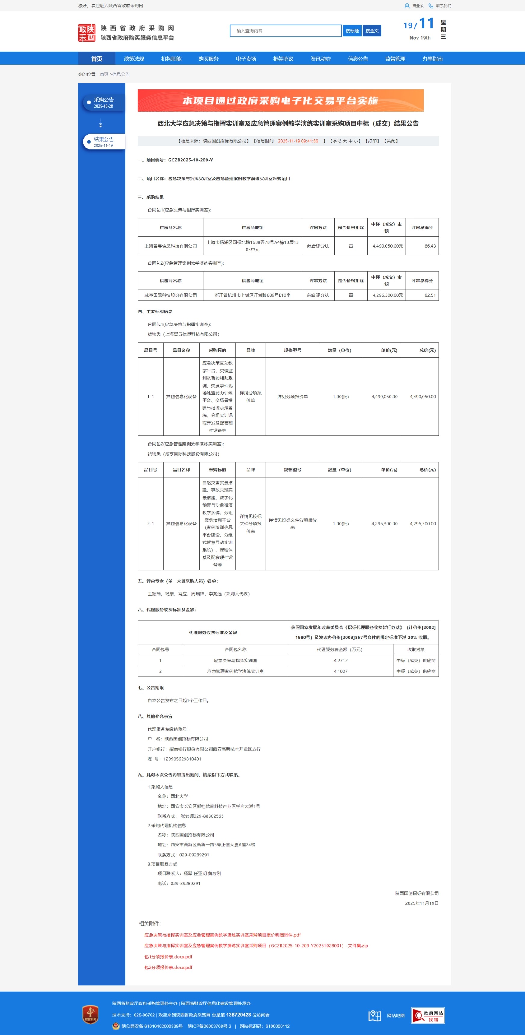 天空(中国)应急决策与指挥实训室及应急管理案例教学演练实训室采购项目中标(成交)结果公告 作者:国有资产管理处 编辑:国有资产管理处 时间:2025-11-19 原公告链接:https://www.ccgp-shaanxi.gov.cn/freecms/site/shaanxi/ggxx/info/2025/8a69c5539a636e42019a99b20ea100c2.html?noticeType=001021¬iceId=296ad358-c4eb-11f0-8063-08c0eb20c666
