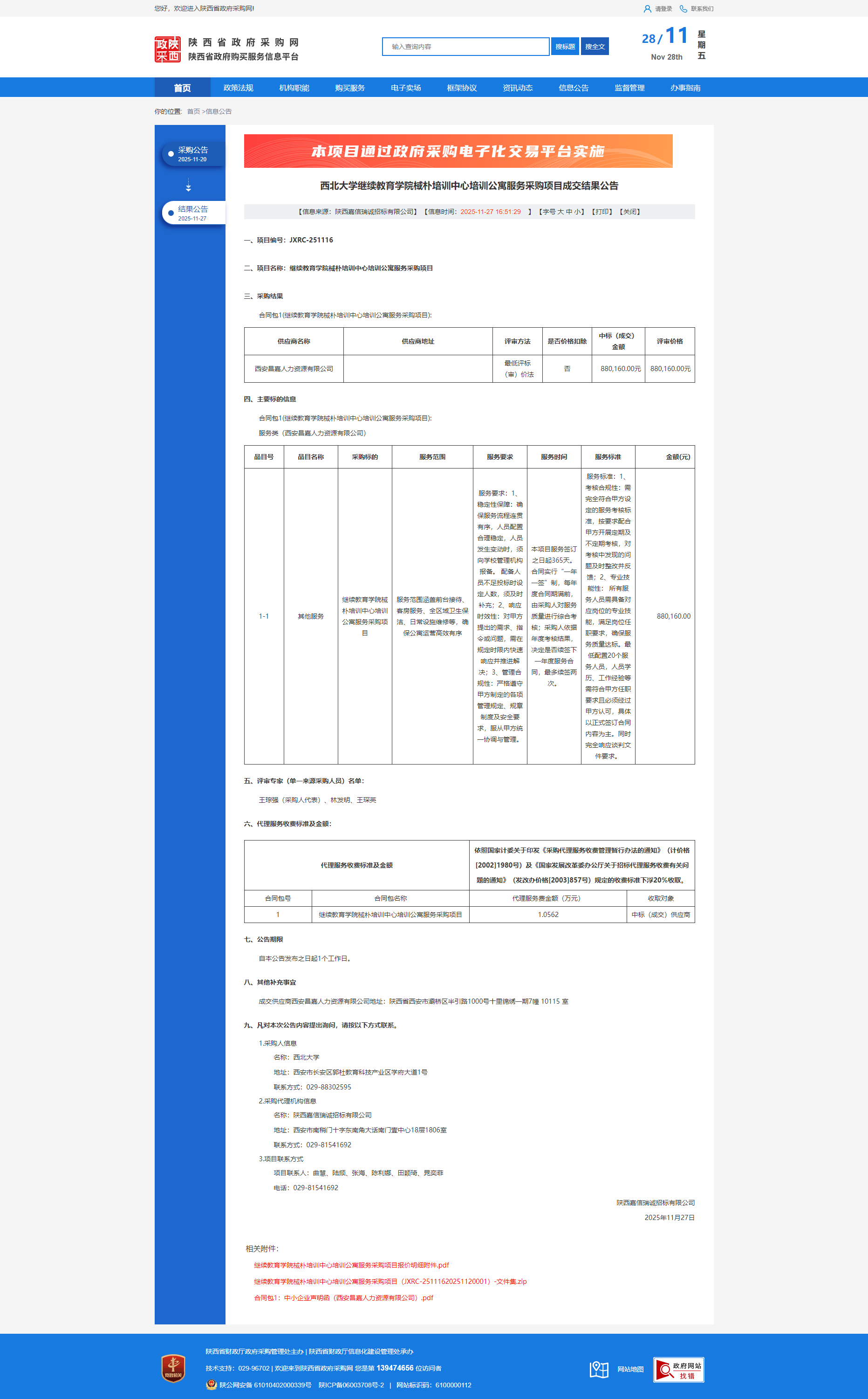 天空(中国)继续教育学院棫朴培训中心培训公寓服务采购项目成交结果公告