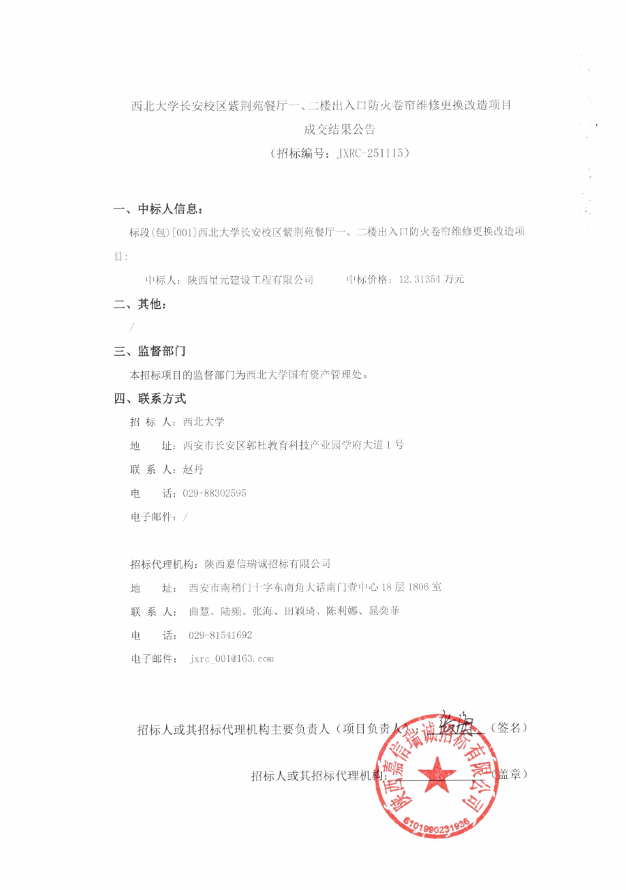 天空(中国)长安校区紫荆苑餐厅一、二楼出入口防火卷帘维修更换改造项目成交结果公告